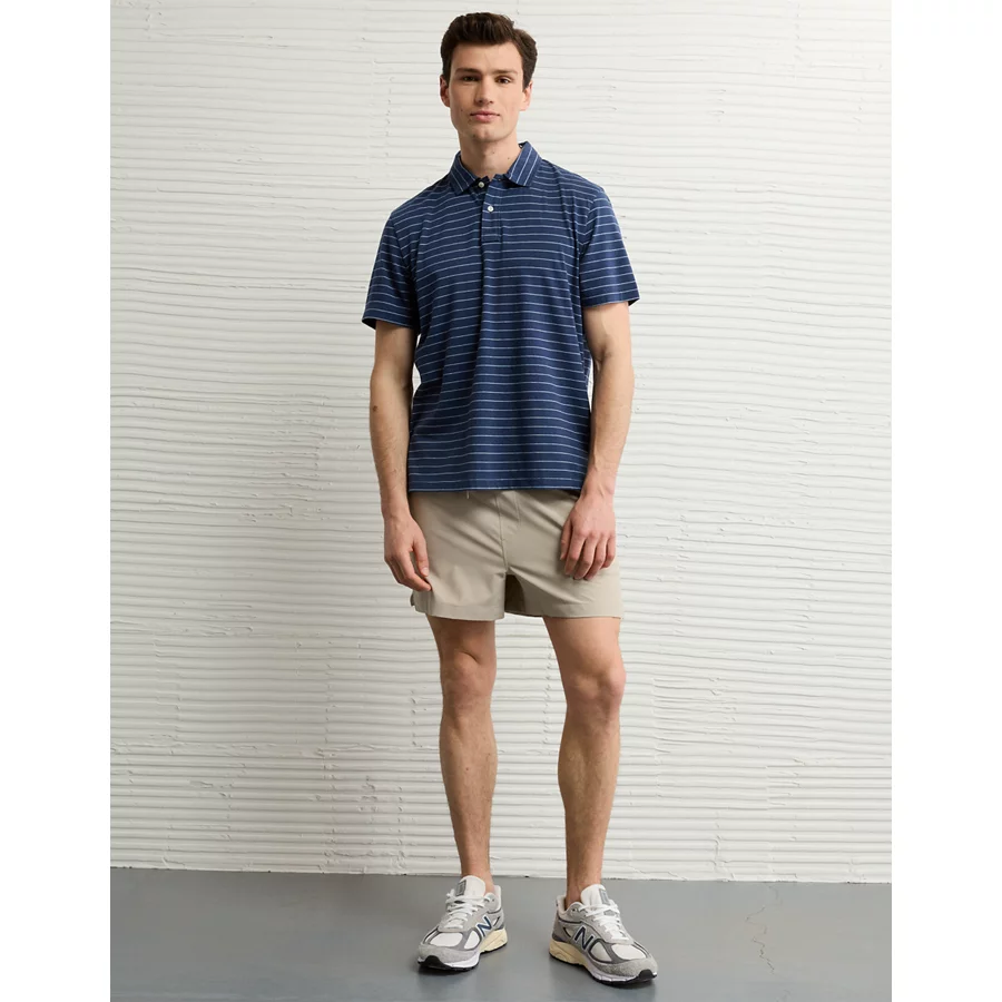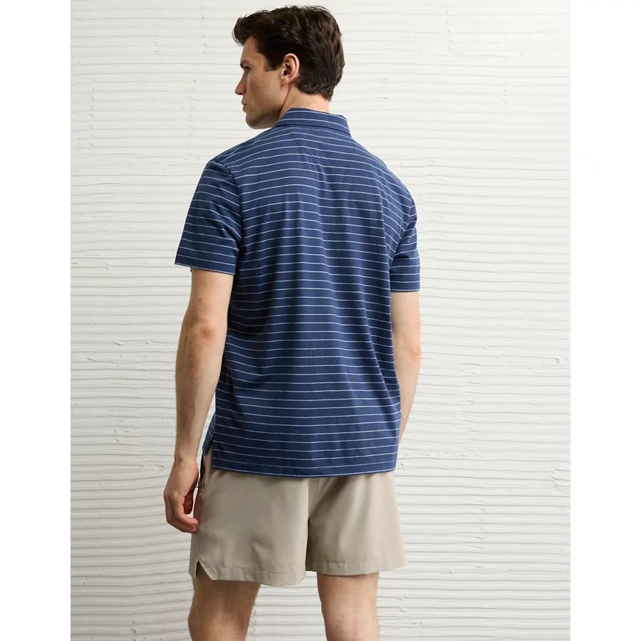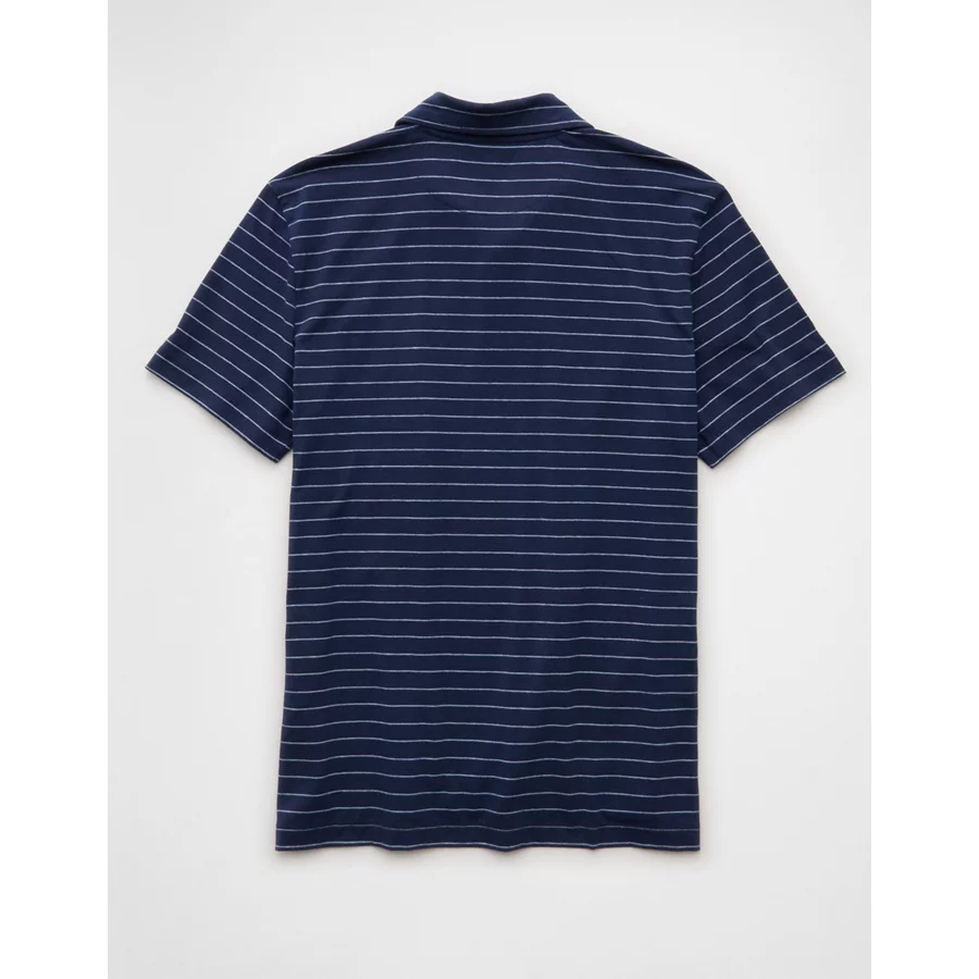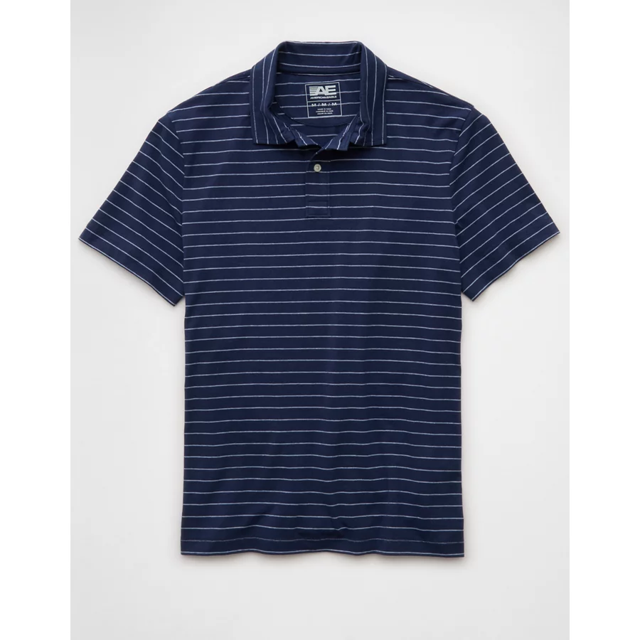 AE 24/7 Club Logo Striped Polo Shirt – Dark Blue