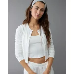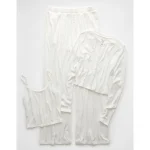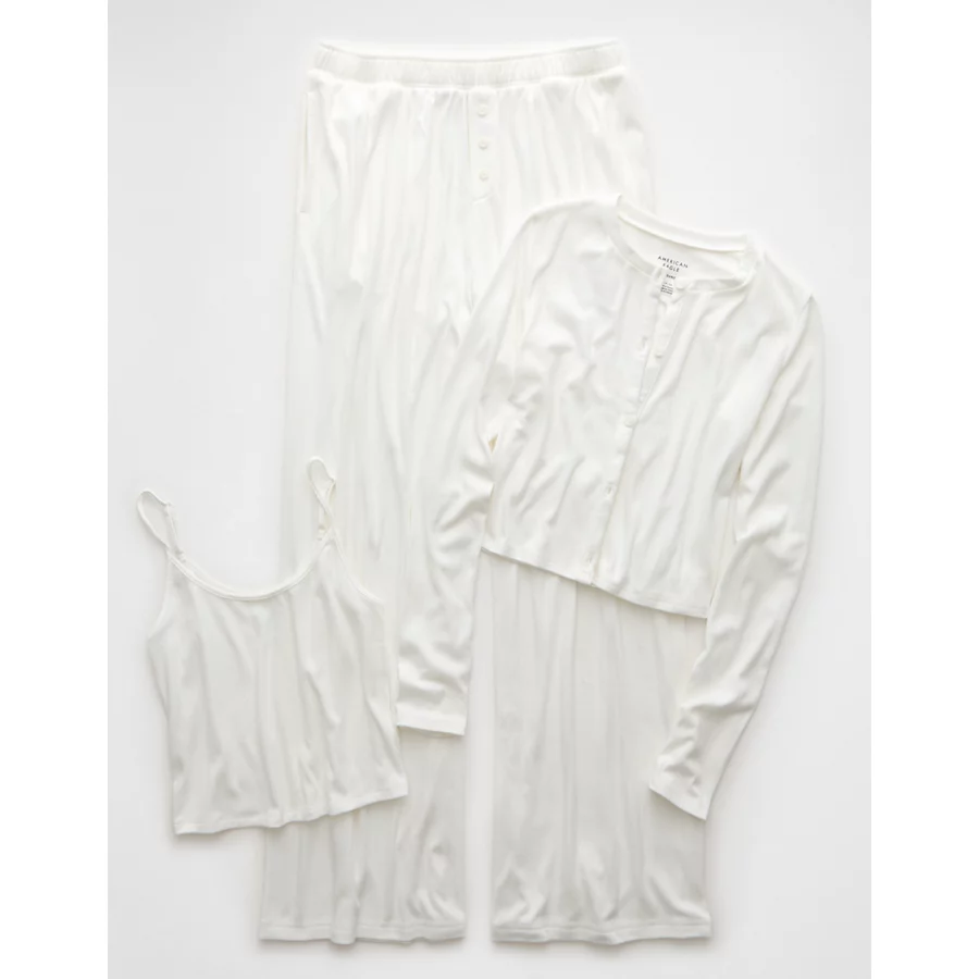 AE 3-Piece Pointelle Plush Cardigan Pajama Set – White