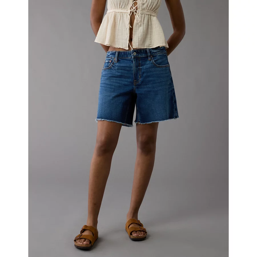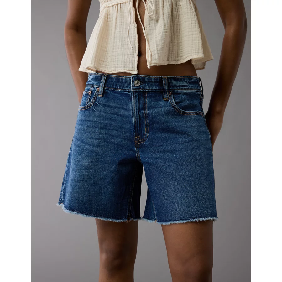 AE 8″ Dreamy Drape Stretch Low-Rise Baggy Jort – Dark Vintage Wash