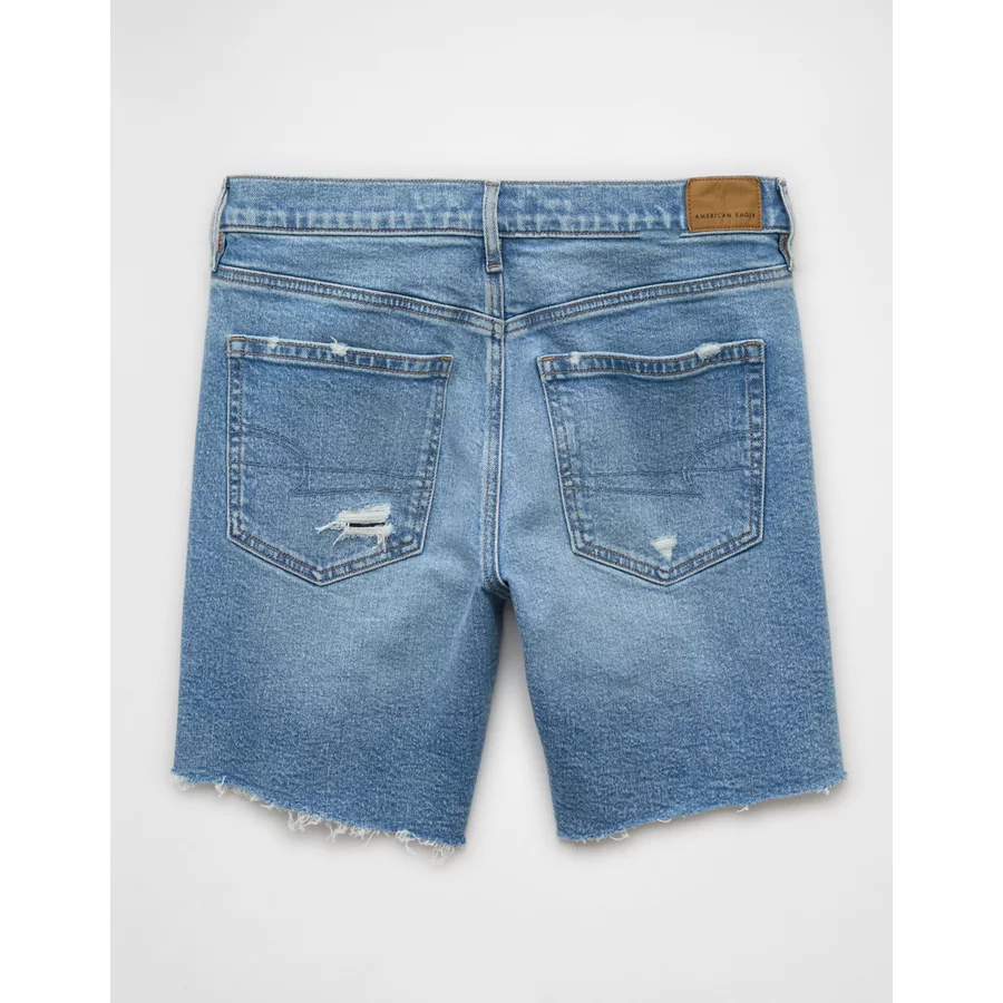AE 8" Strigid Ripped Perfect Denim Bermuda Short - Destroyed Light Wash