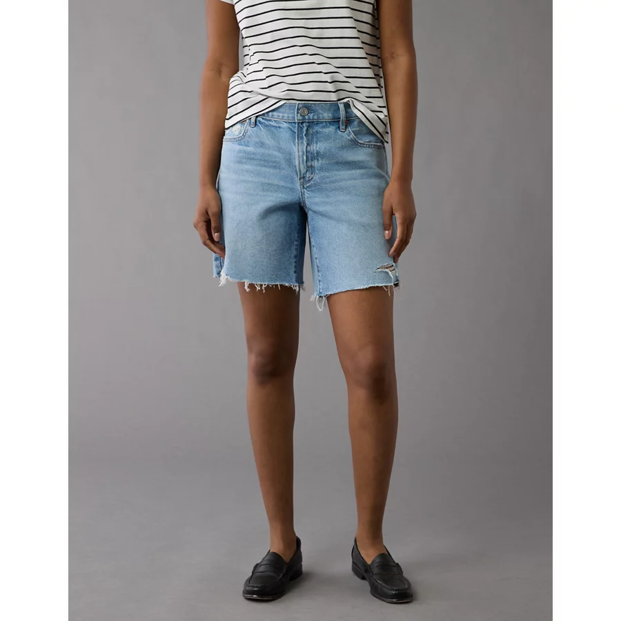 AE 8" Dreamy Drape Stretch Low-Rise Baggy Jort - Medium Bright Indigo