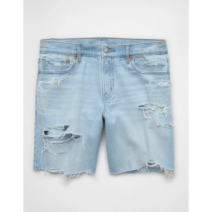 AE 8″ Strigid Ripped Perfect Denim Bermuda Short – Destroyed Light Wash