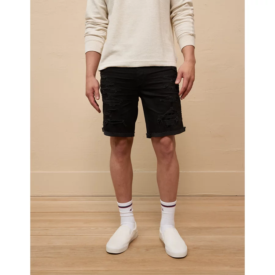 AE 9″ AirFlex+ Patched Denim Short – Rip And Repair Black