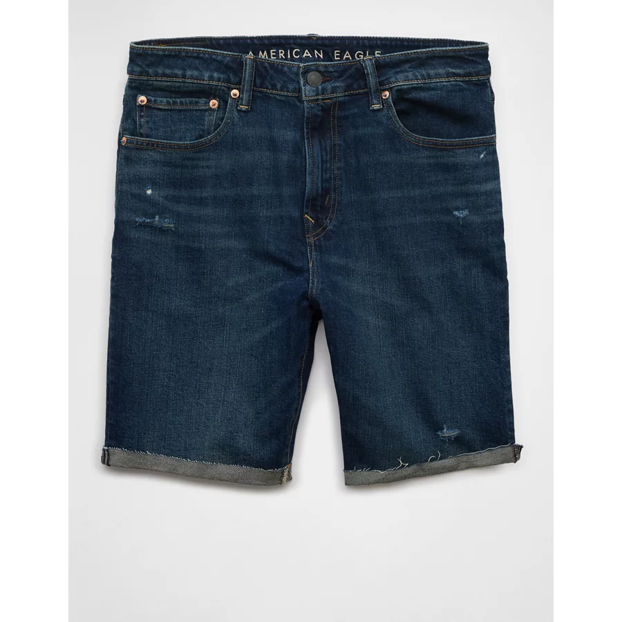 AE 8" Strigid Ripped Perfect Denim Bermuda Short - Destroyed Light Wash