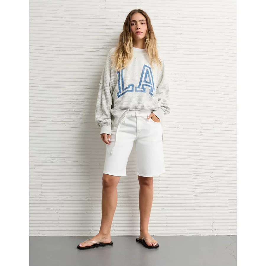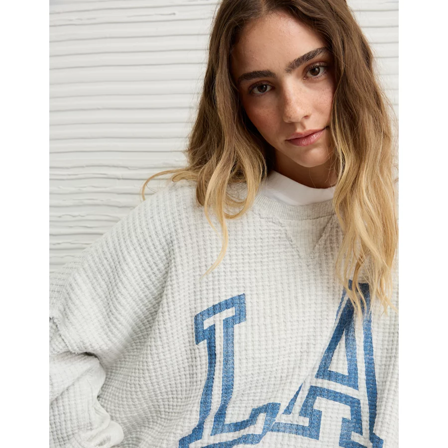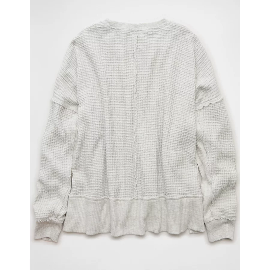 AE Big Hug Crew Neck Waffle Sweatshirt – Light Heather Gray