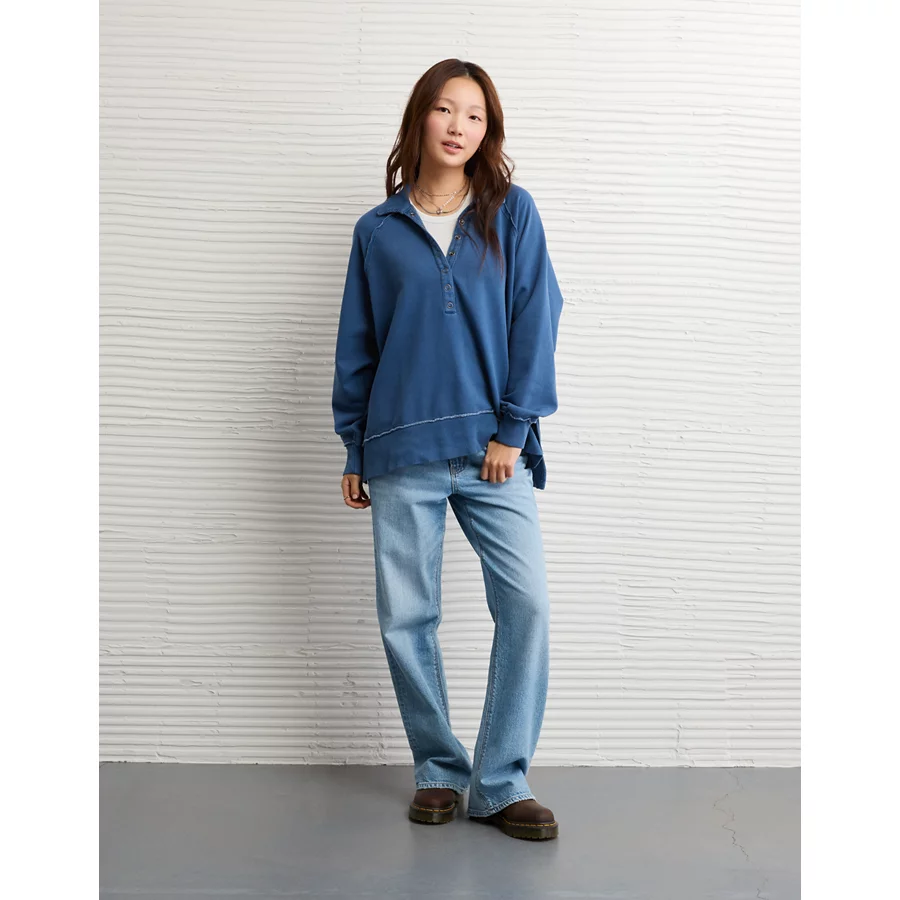AE Big Hug Henley Sweatshirt – Navy