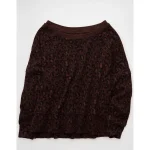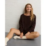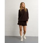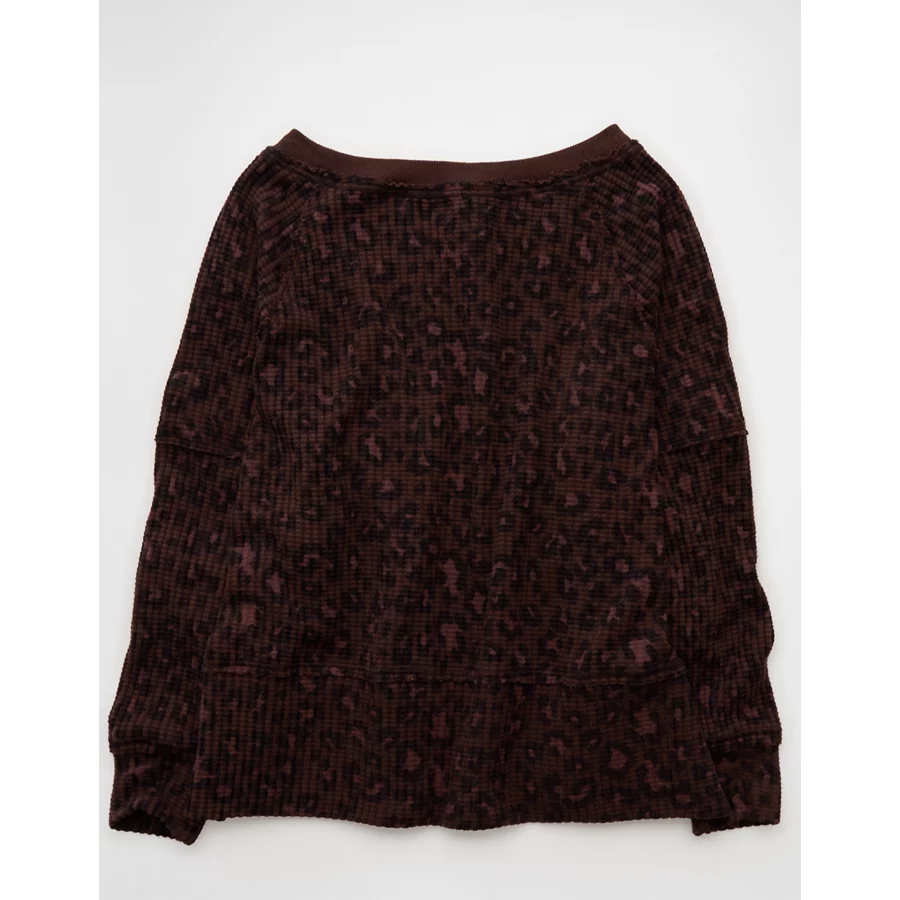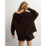 AE Big Hug Off-The-Shoulder Waffle Sweatshirt – Dark Brown