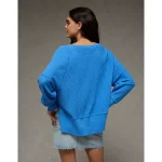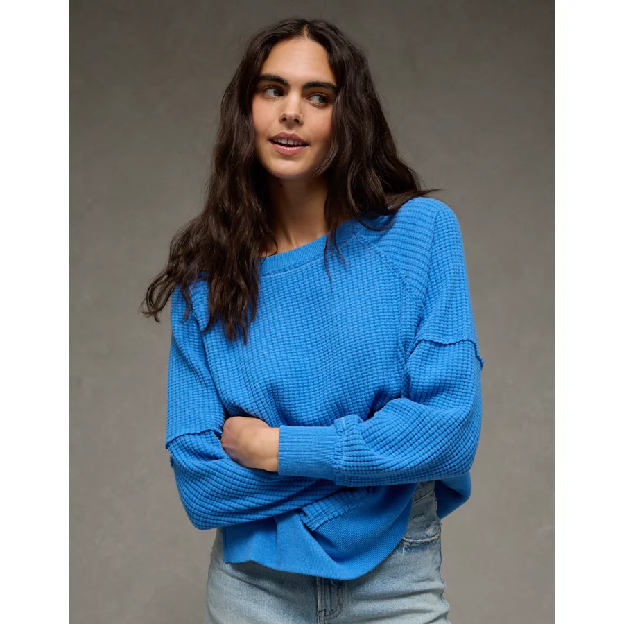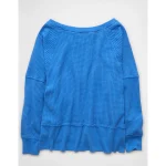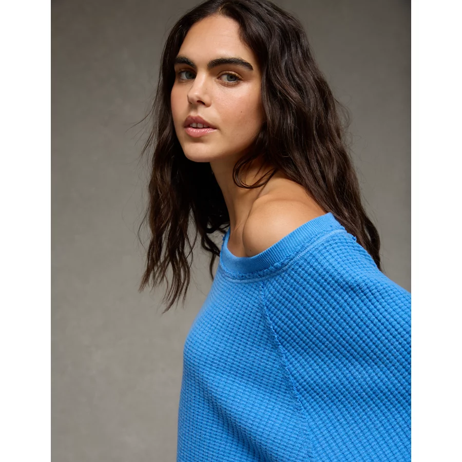 AE Big Hug Off-The-Shoulder Waffle Sweatshirt – Rich Sapphire