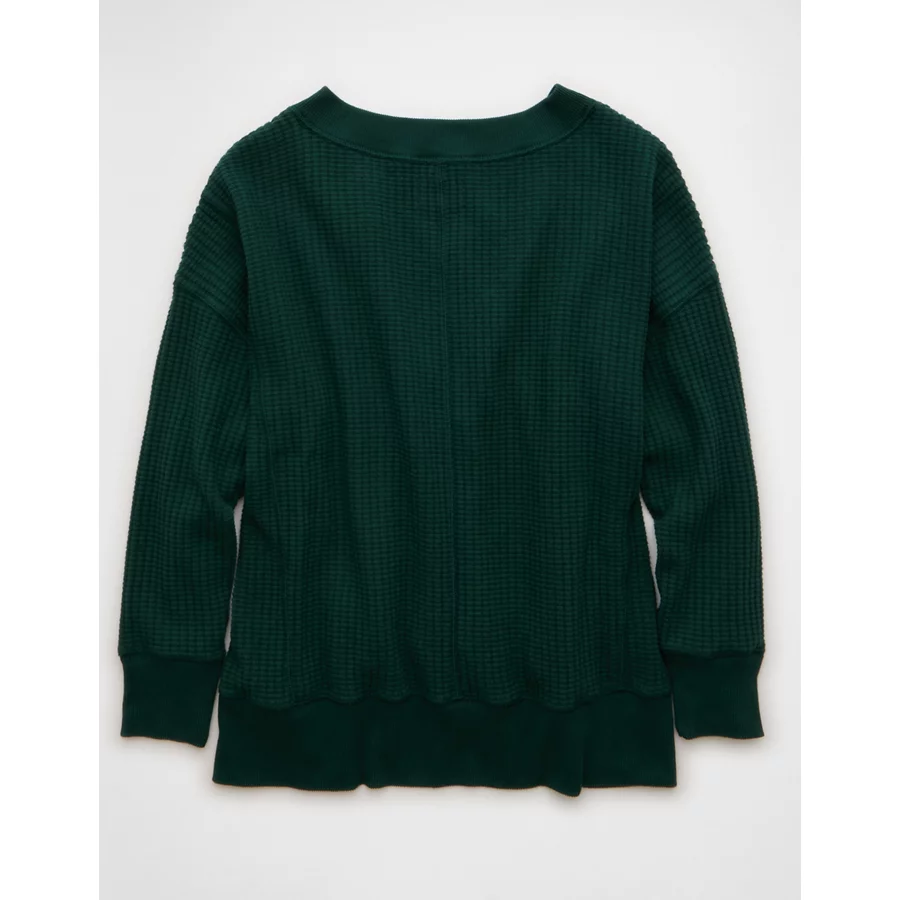 AE Big Hug V-Neck Waffle Sweatshirt – Deep Forest