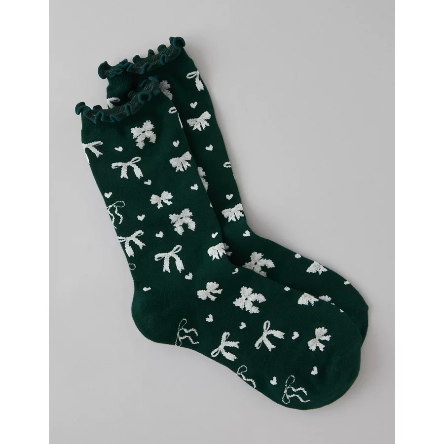 AE Bows Ruffle Crew Socks - Ruby Kiss