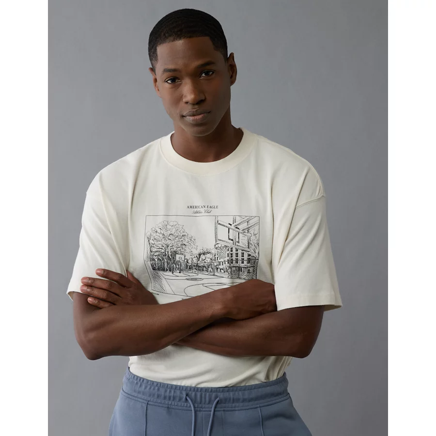 AE Boxy Logo Graphic T-Shirt – Bone Khaki