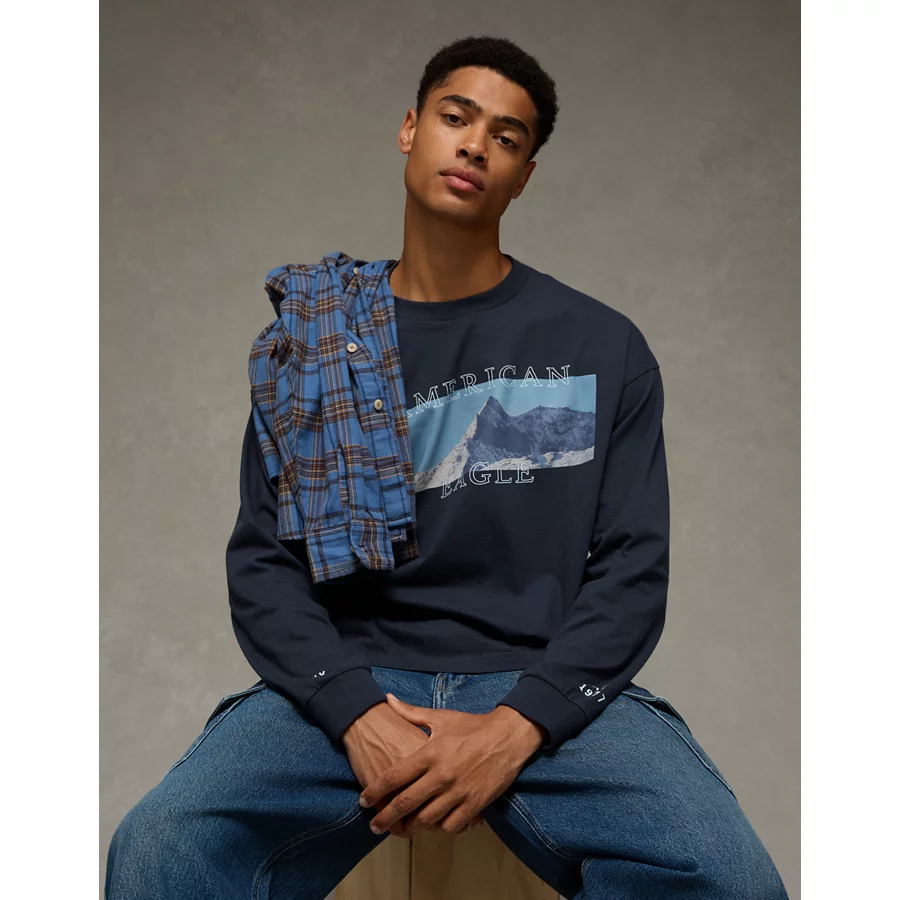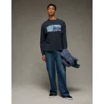 AE Boxy Long Sleeve Destination Graphic T-Shirt – Black