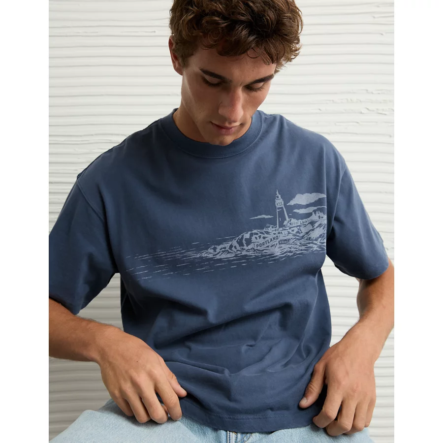 AE Boxy Nautical Graphic T-Shirt - Soft Blue