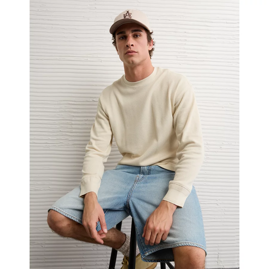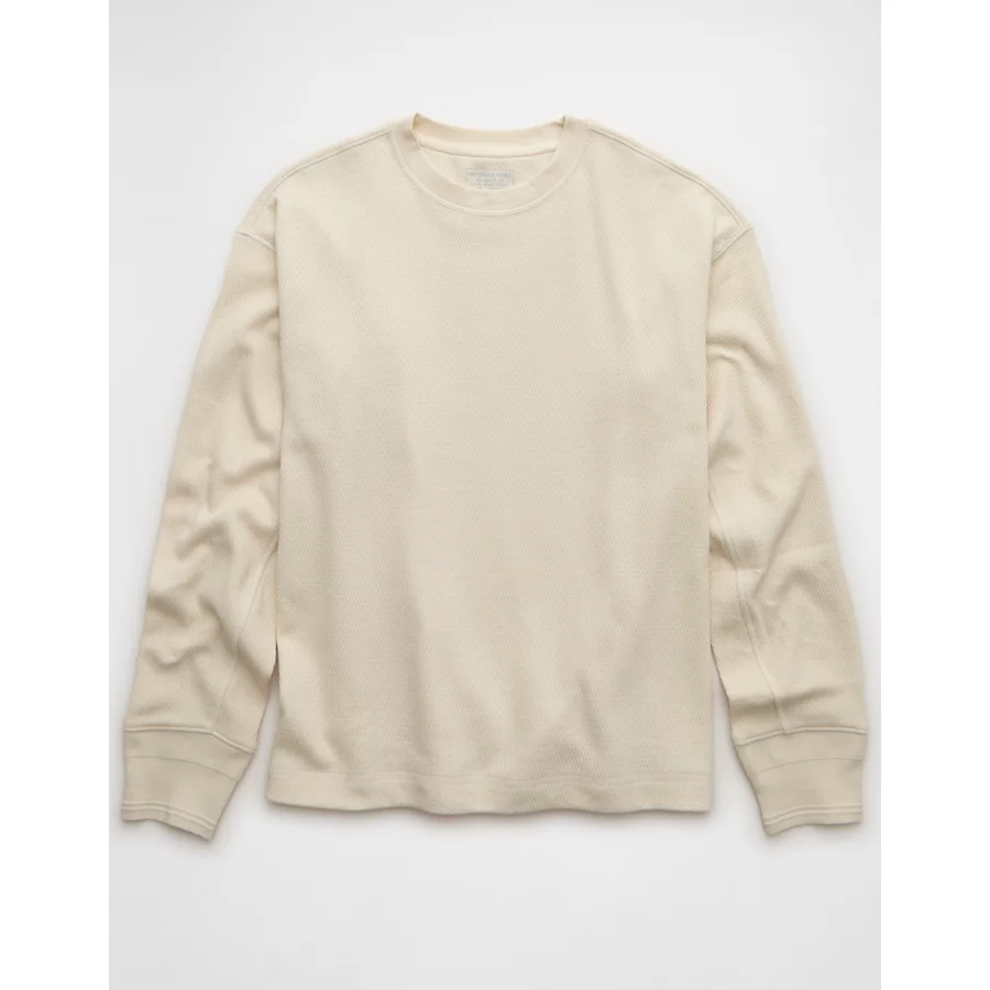 AE Boxy Washed Thermal Shirt – Cream
