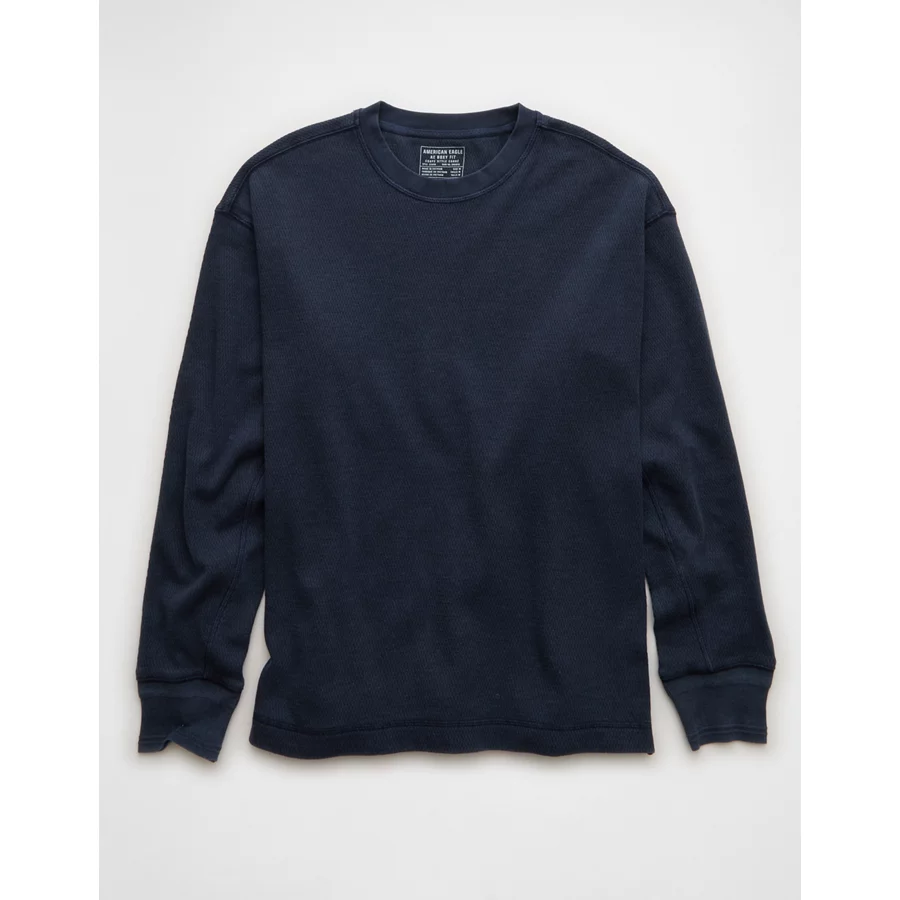 AE Boxy Washed Thermal Shirt – Navy