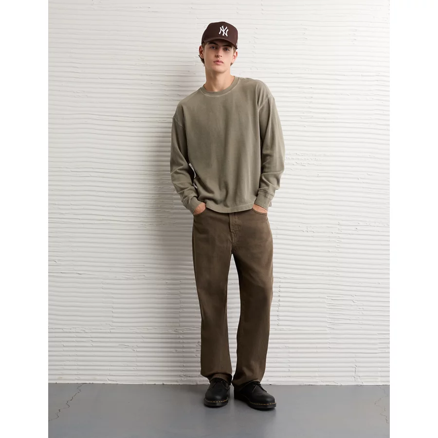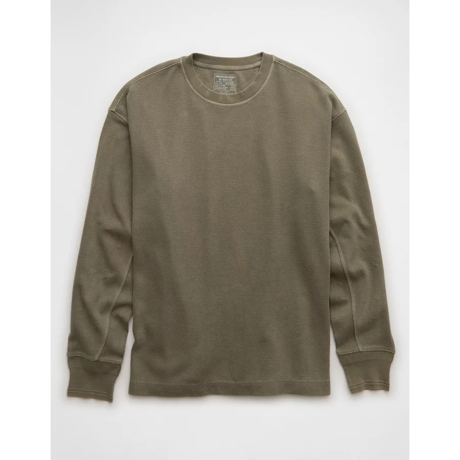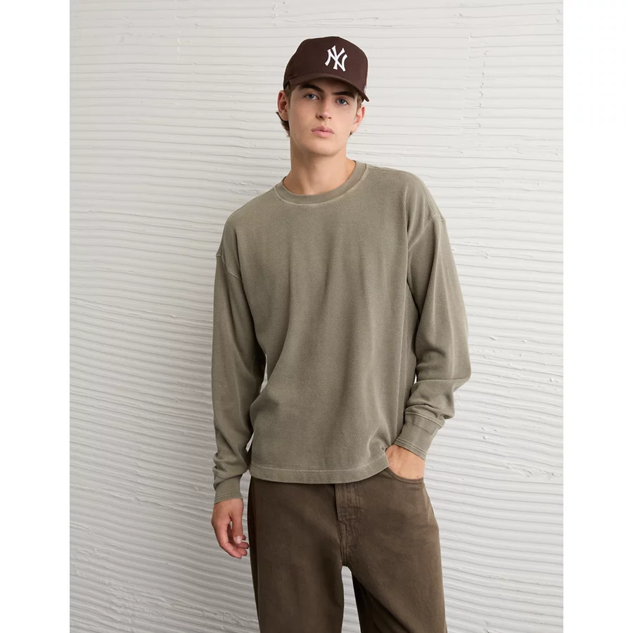 AE Boxy Washed Thermal Shirt – Olive