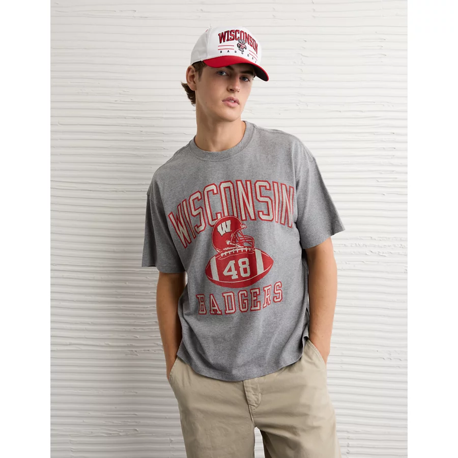 AE Boxy Wisconsin Badgers Graphic T-Shirt – Gray Heather