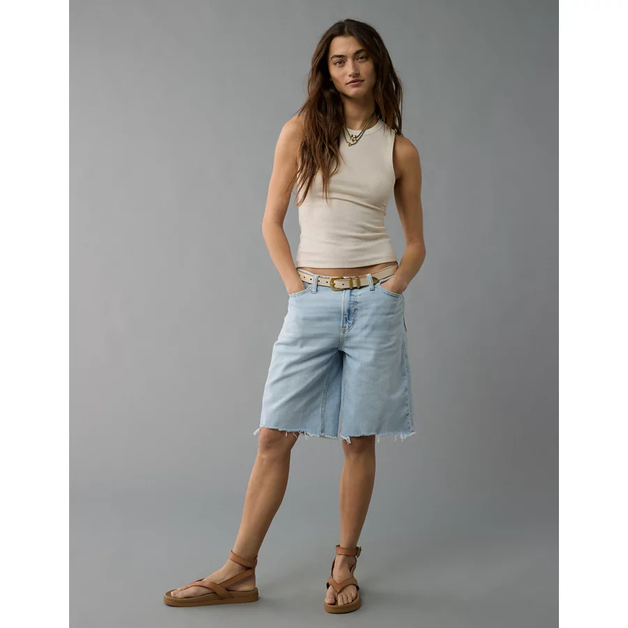 AE 8″ Dreamy Drape Stretch Low-Rise Baggy Jort – White