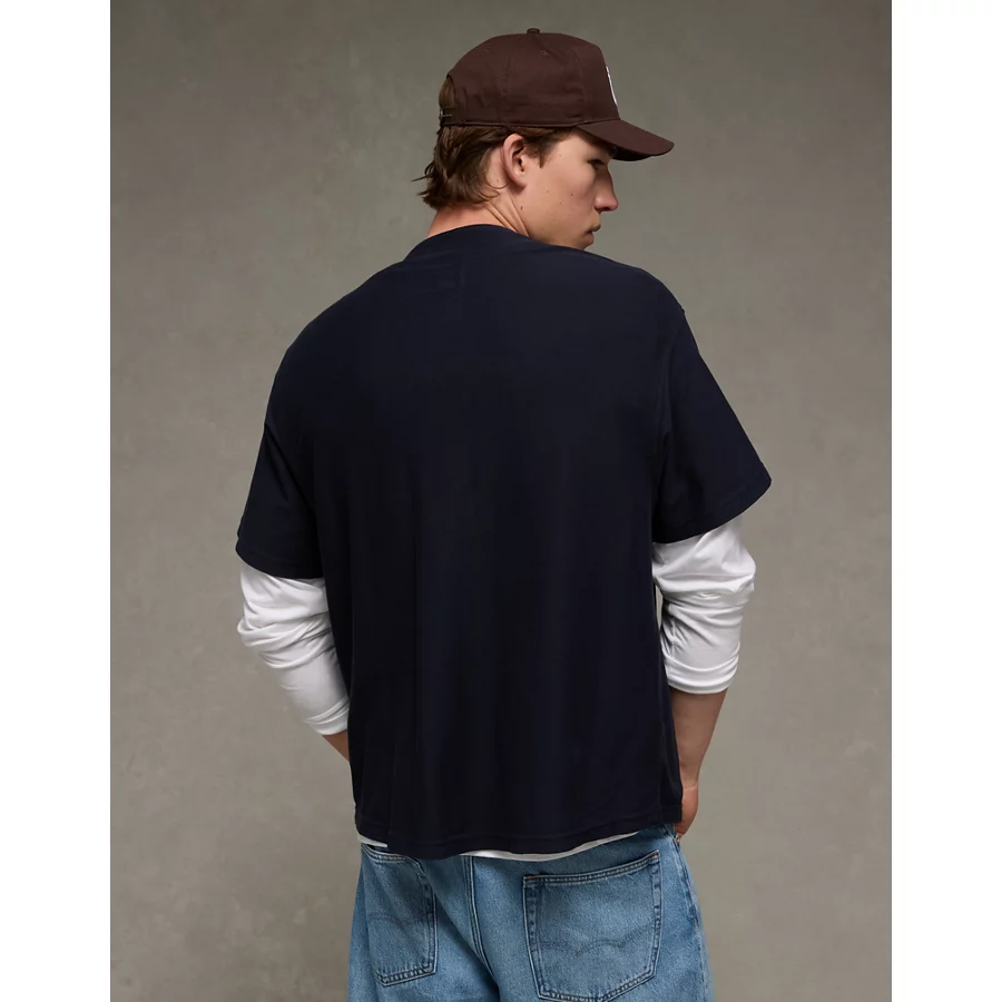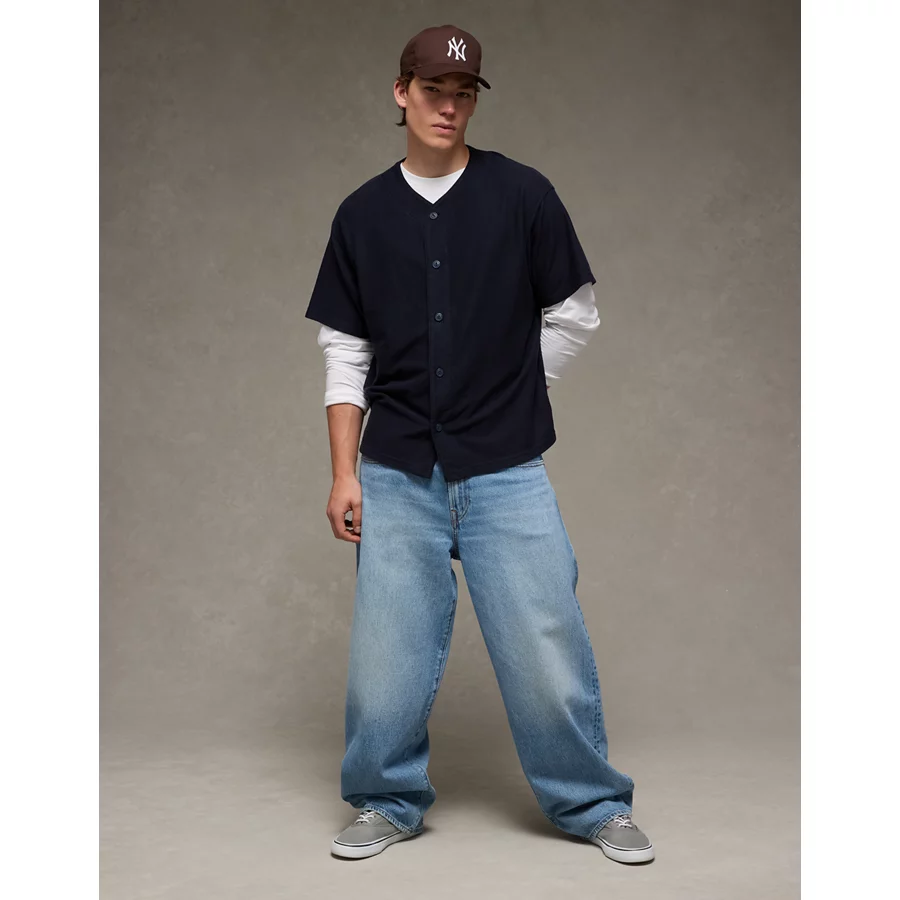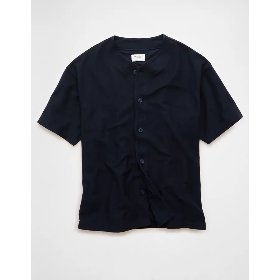 AE Button-Up Baseball T-Shirt – Blue