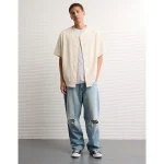 AE 24/7 Club Logo Striped Polo Shirt – Cream