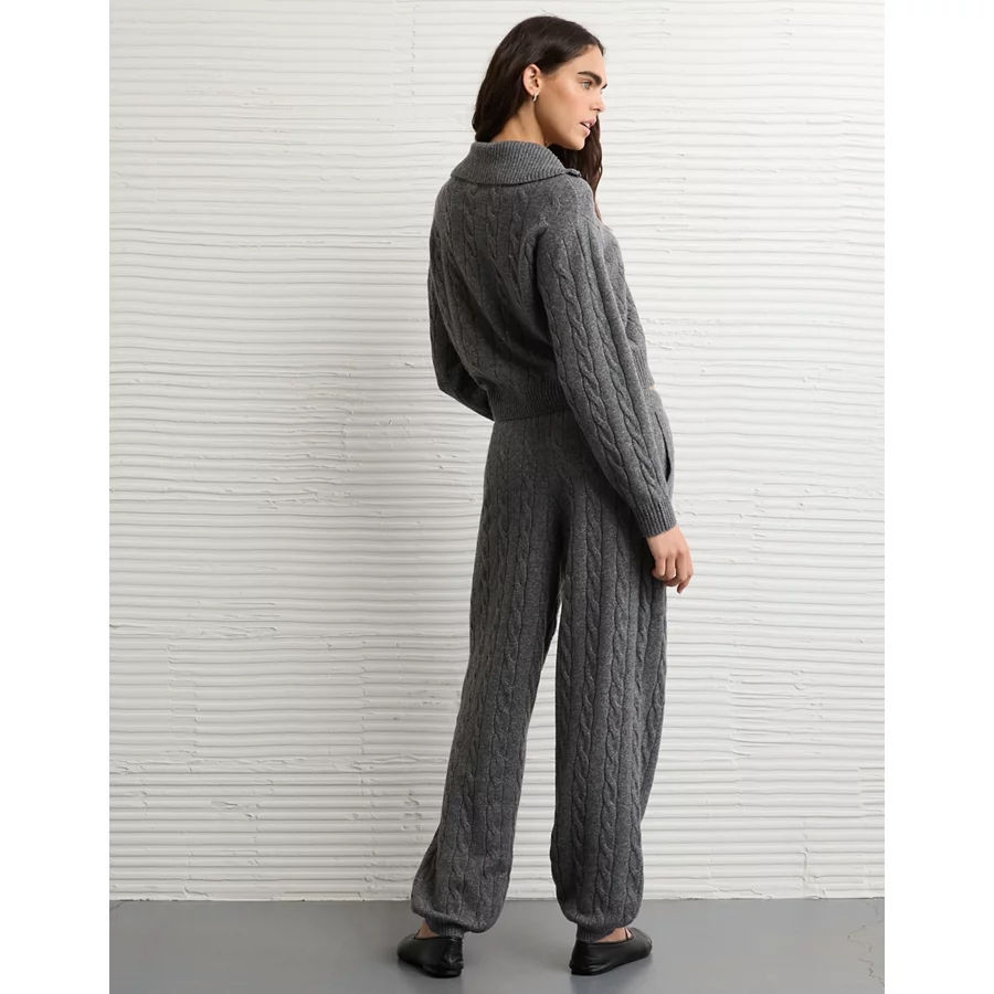 AE Cable-Knit Quarter-Zip Sweater – Charcoal Heather Gray