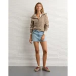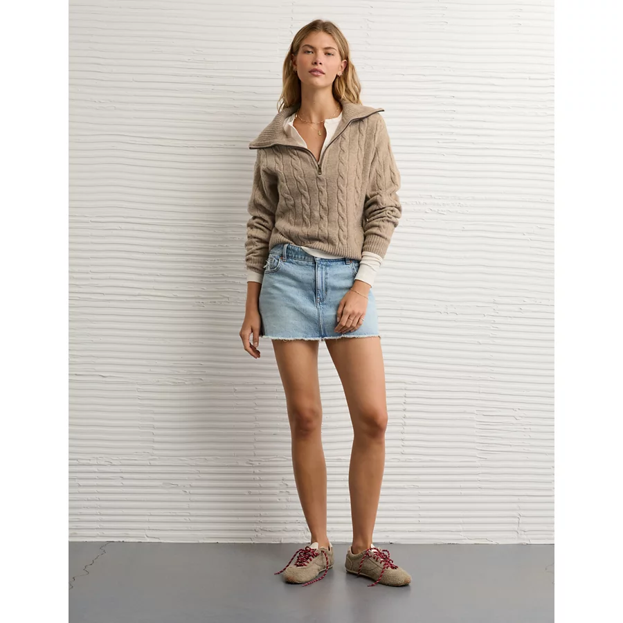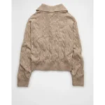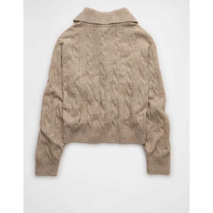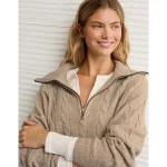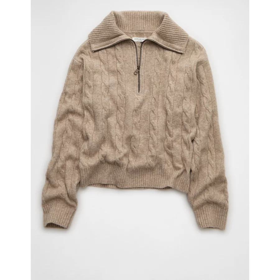 AE Cable-Knit Quarter-Zip Sweater – Toasted Almond