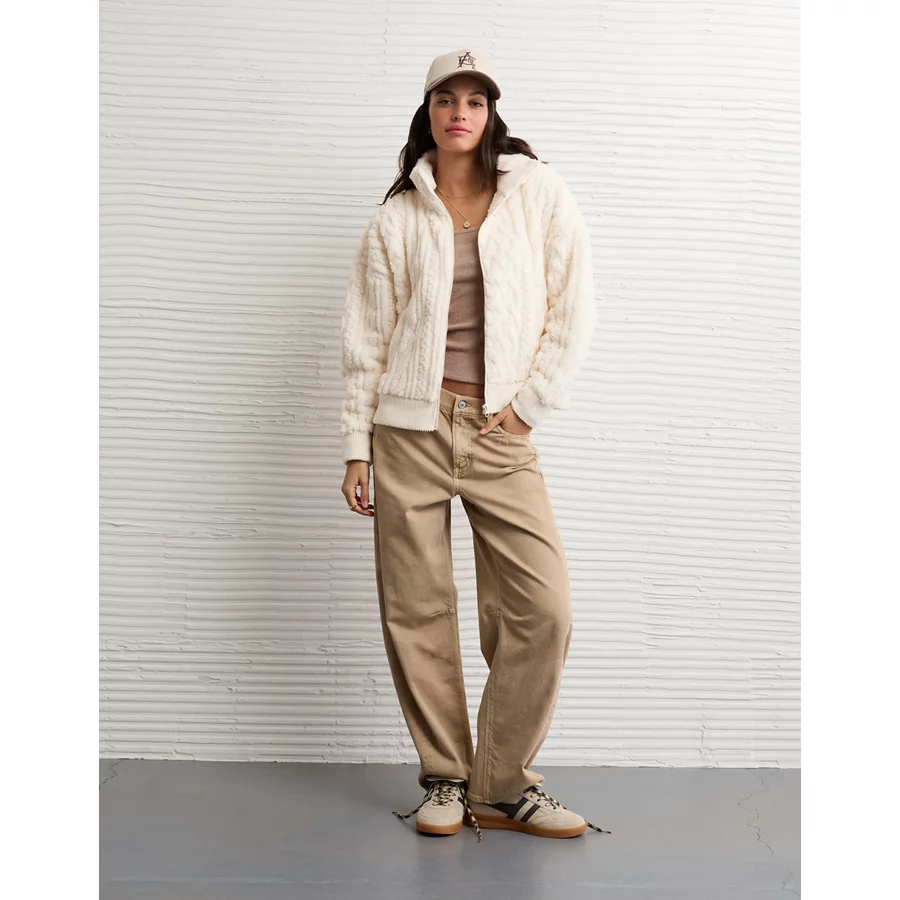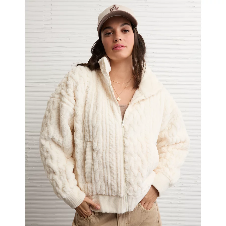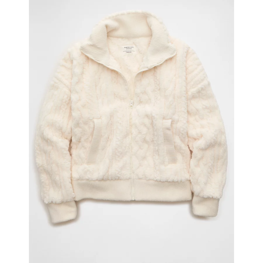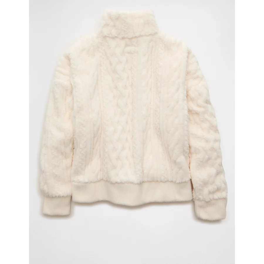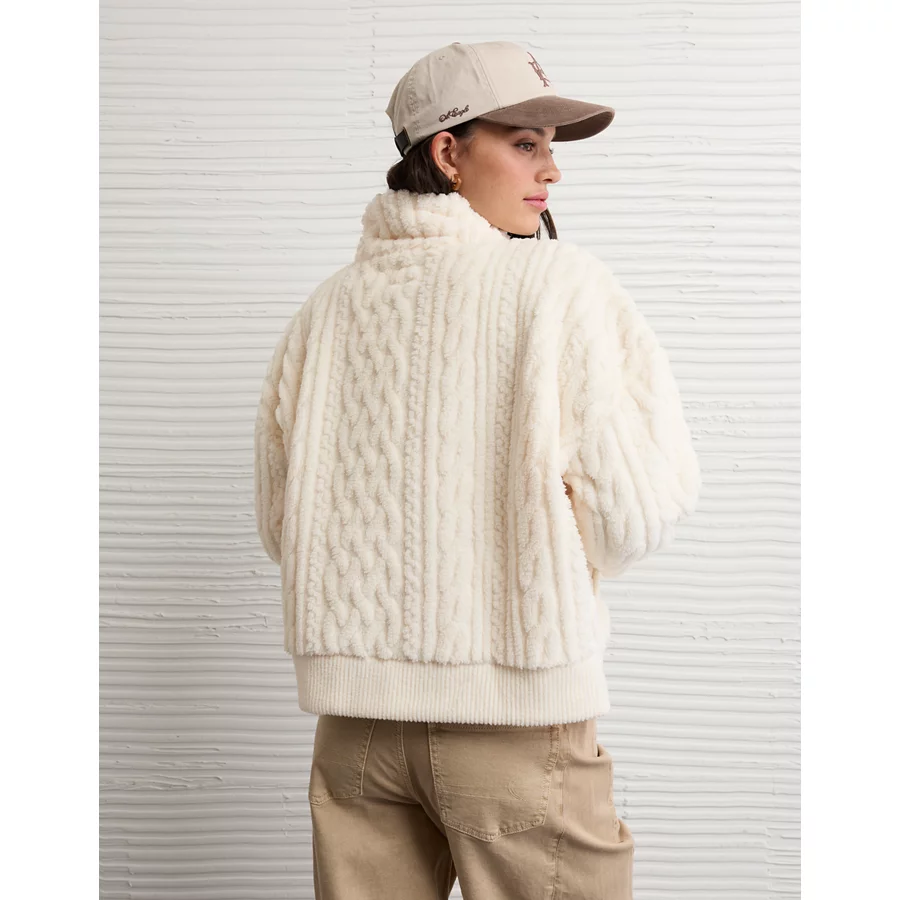 AE Cable Sherpa Full-Zip Sweatshirt – Cream