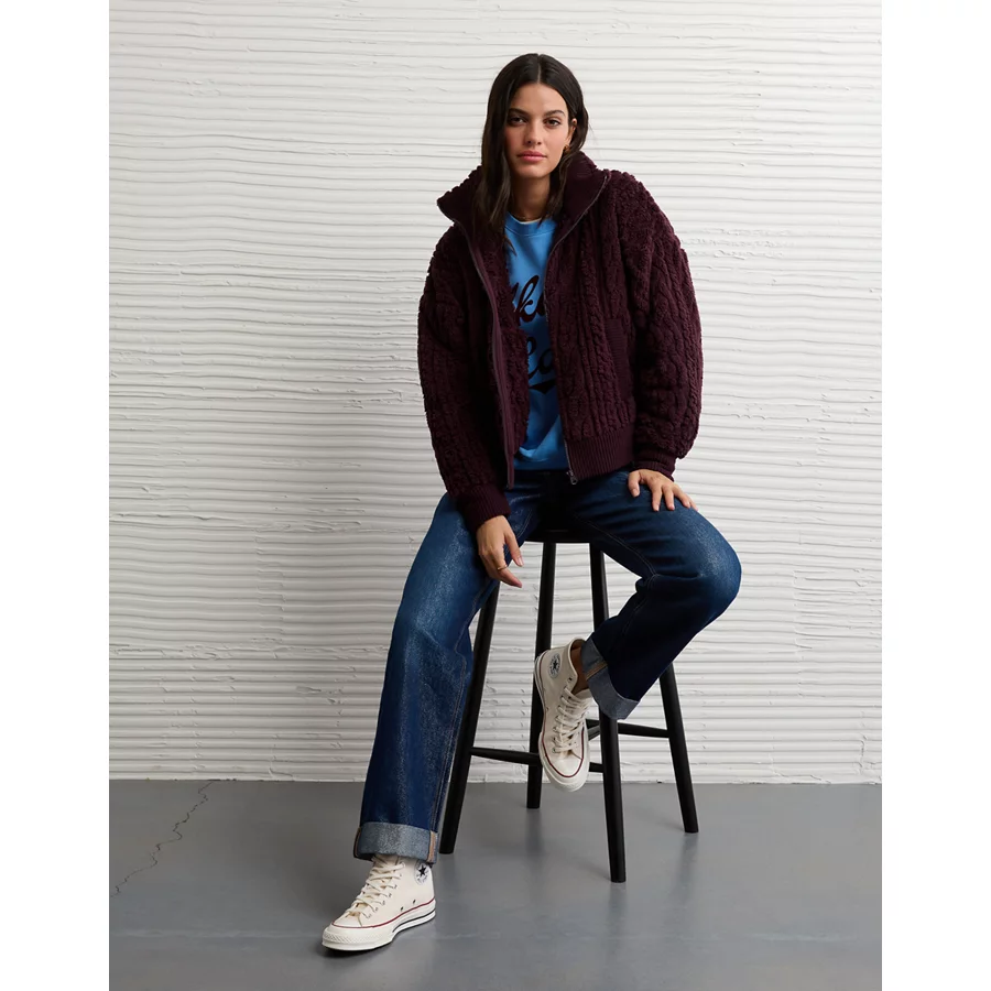 AE Cable Sherpa Full-Zip Sweatshirt – Moonlight