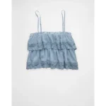 AE Chiffon Tiered Ruffle Tank Top – Light Blue