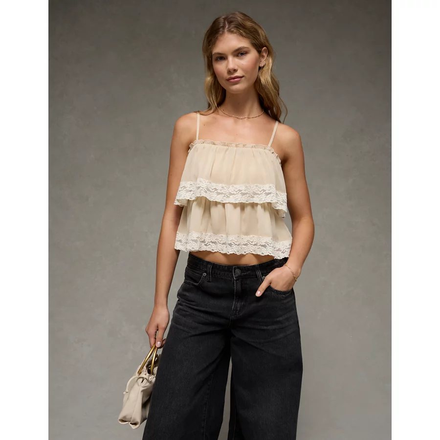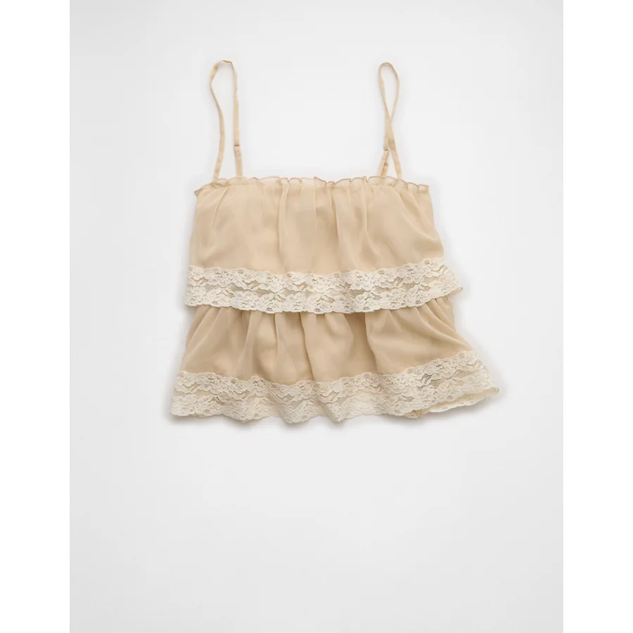 AE Chiffon Tiered Ruffle Tank Top – Light Khaki