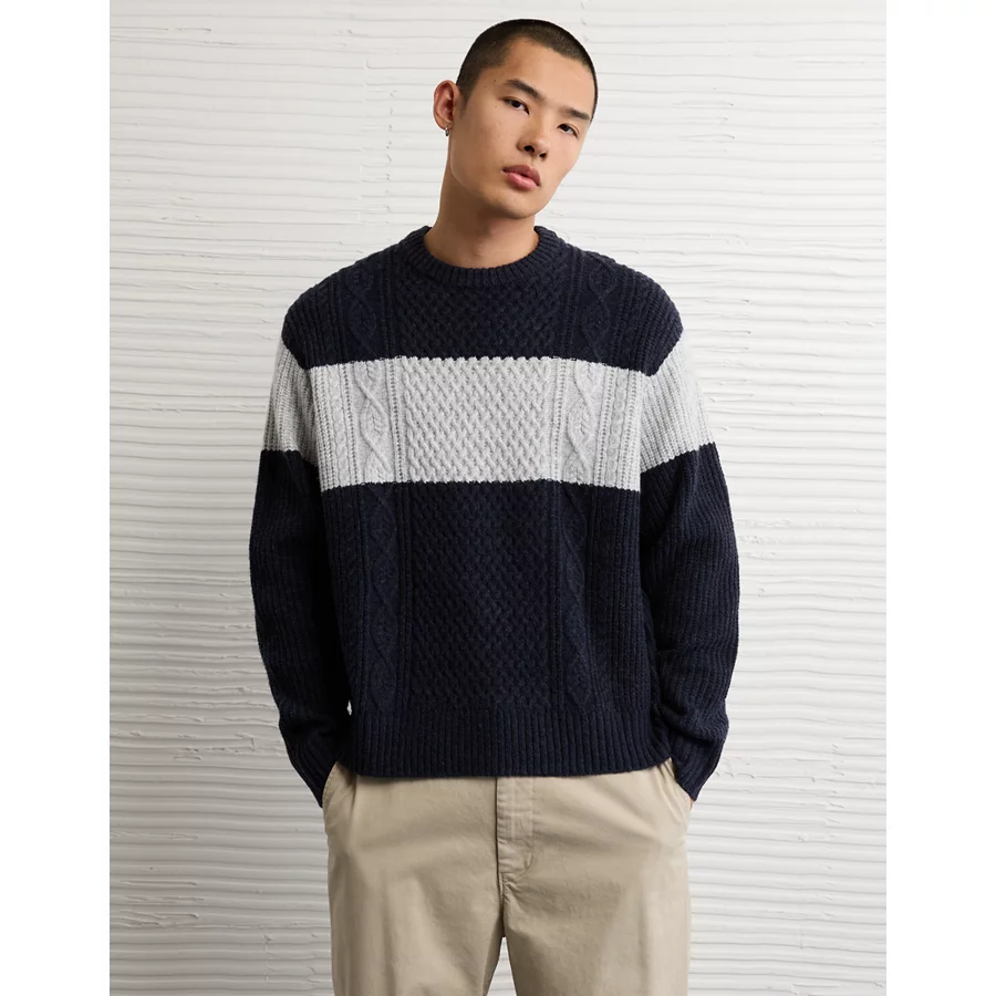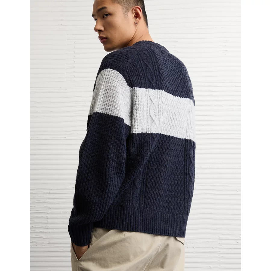 AE Cozy Cabin Chest Stripe Sweater – Navy