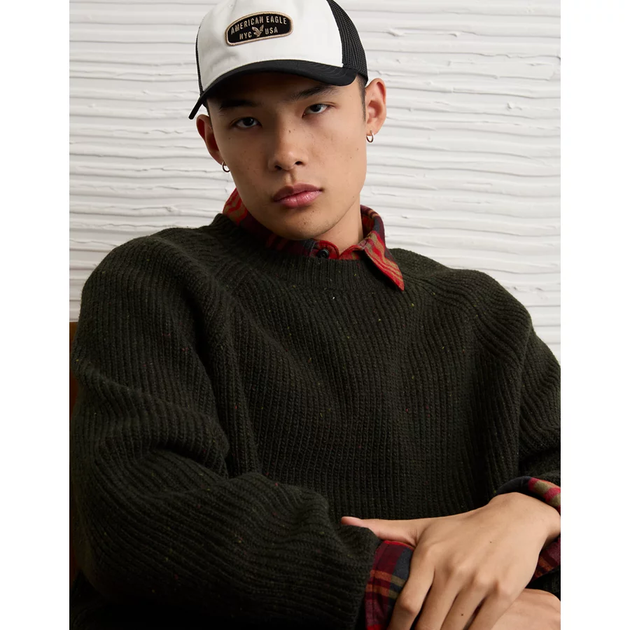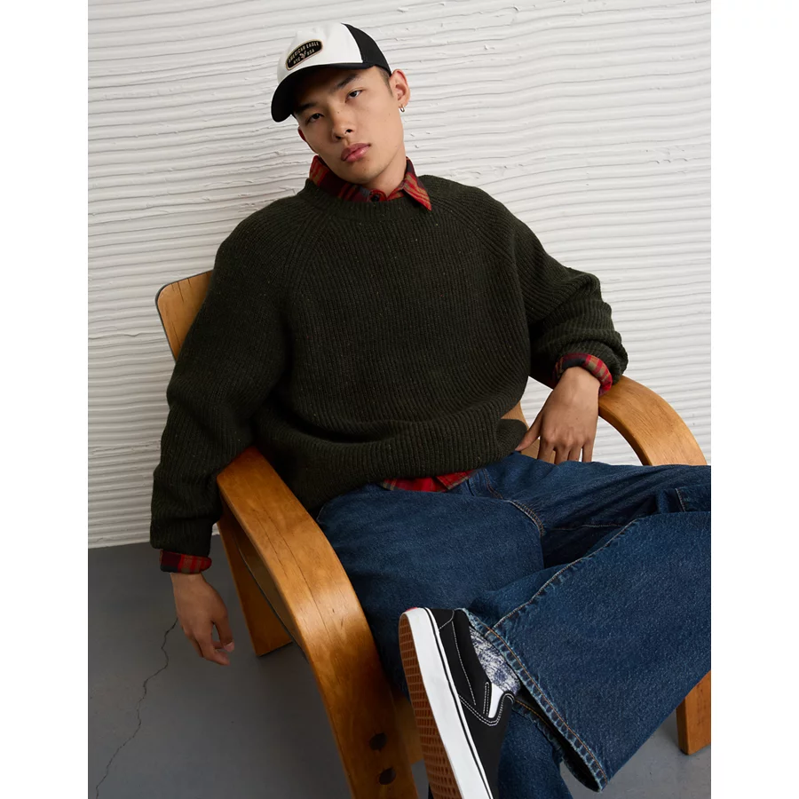 AE Cozy Cabin Crew Neck Sweater – Camo Green