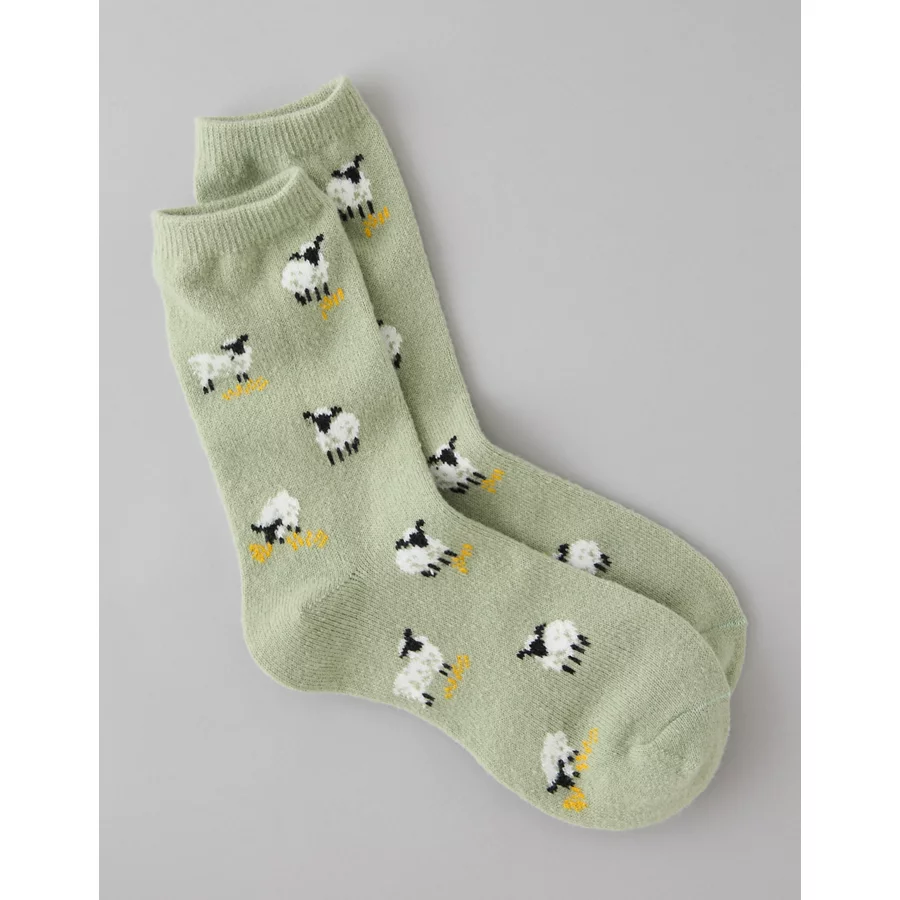 AE Cozy Christmas Tree Crew Socks - Coffee