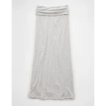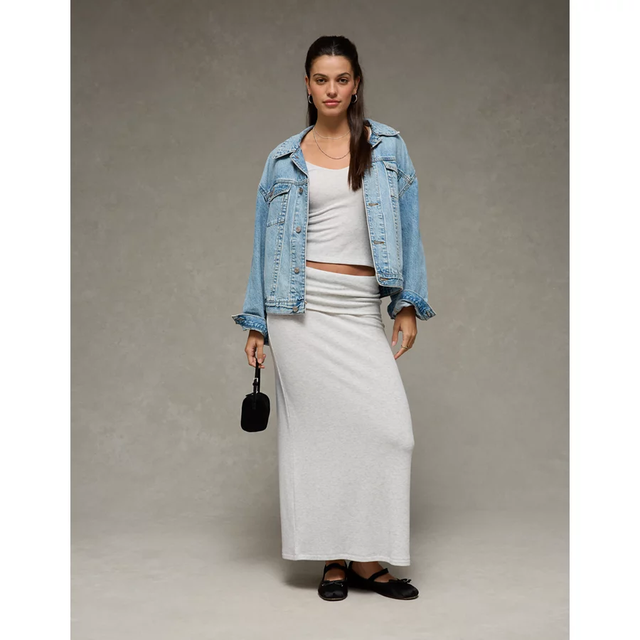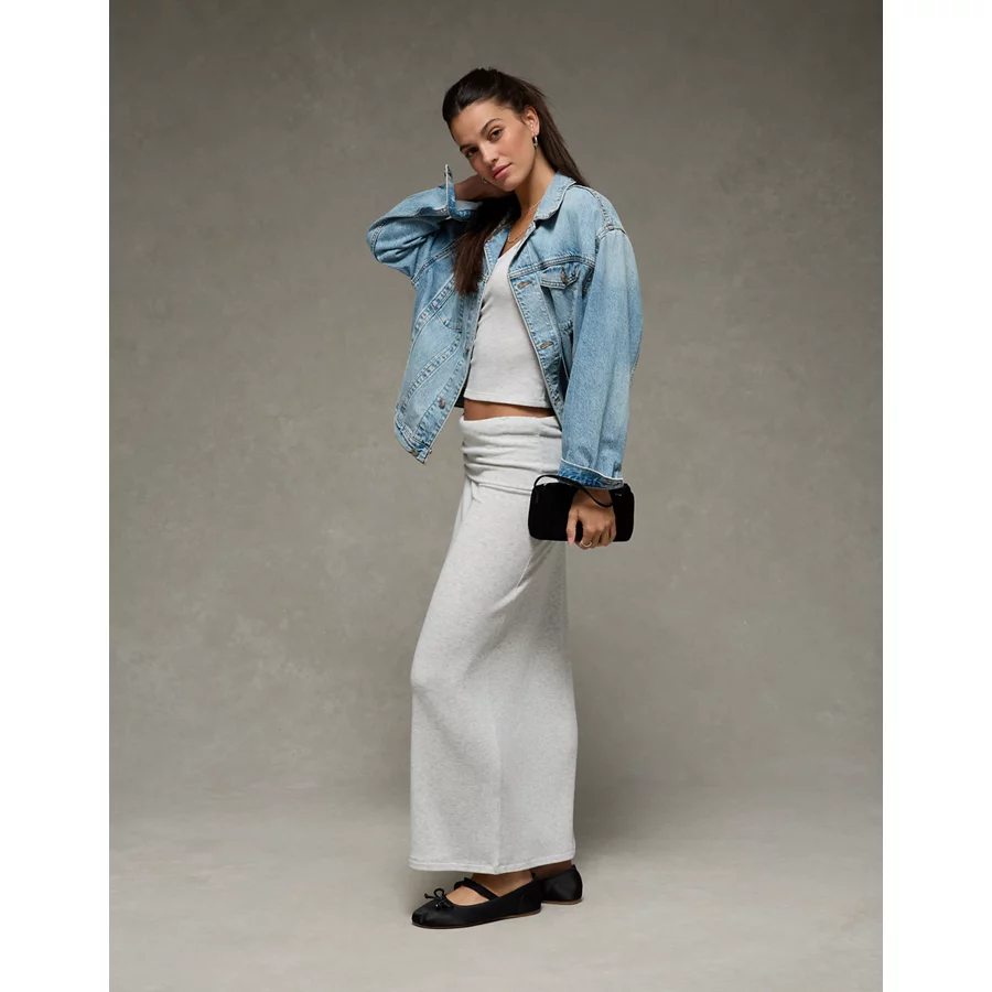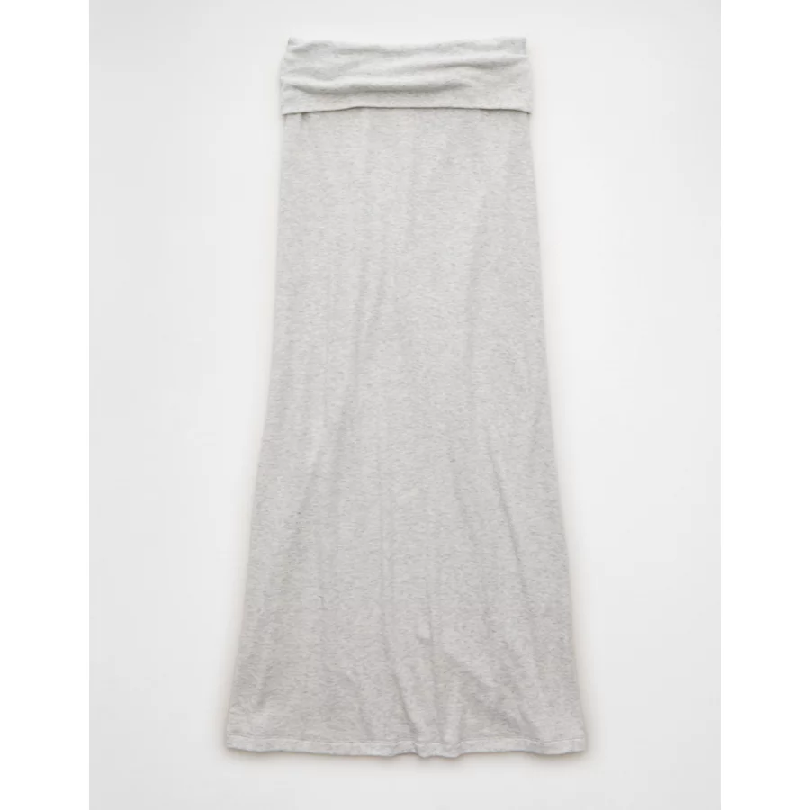 AE Cozy High-Waisted Foldover Maxi Skirt – Light Heather Gray