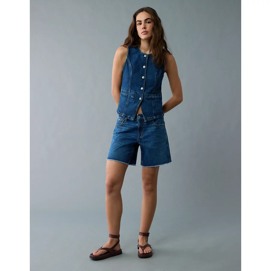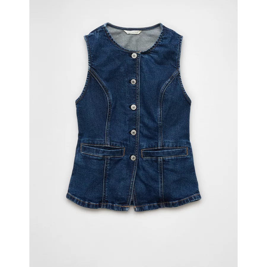 AE Crew Neck Button-Up Denim Vest – Dark Wash