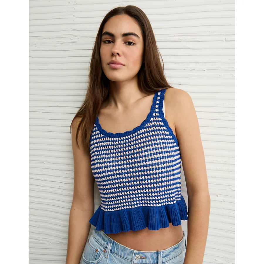 AE Asymmetrical Ruffle Maxi Slip Dress – Light Blue