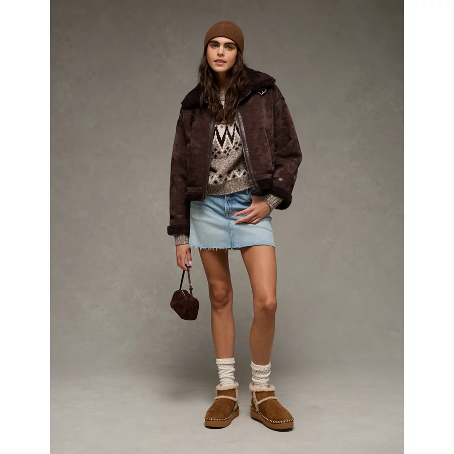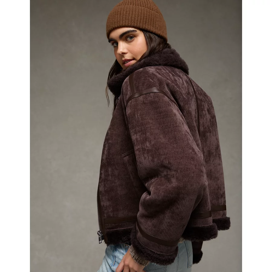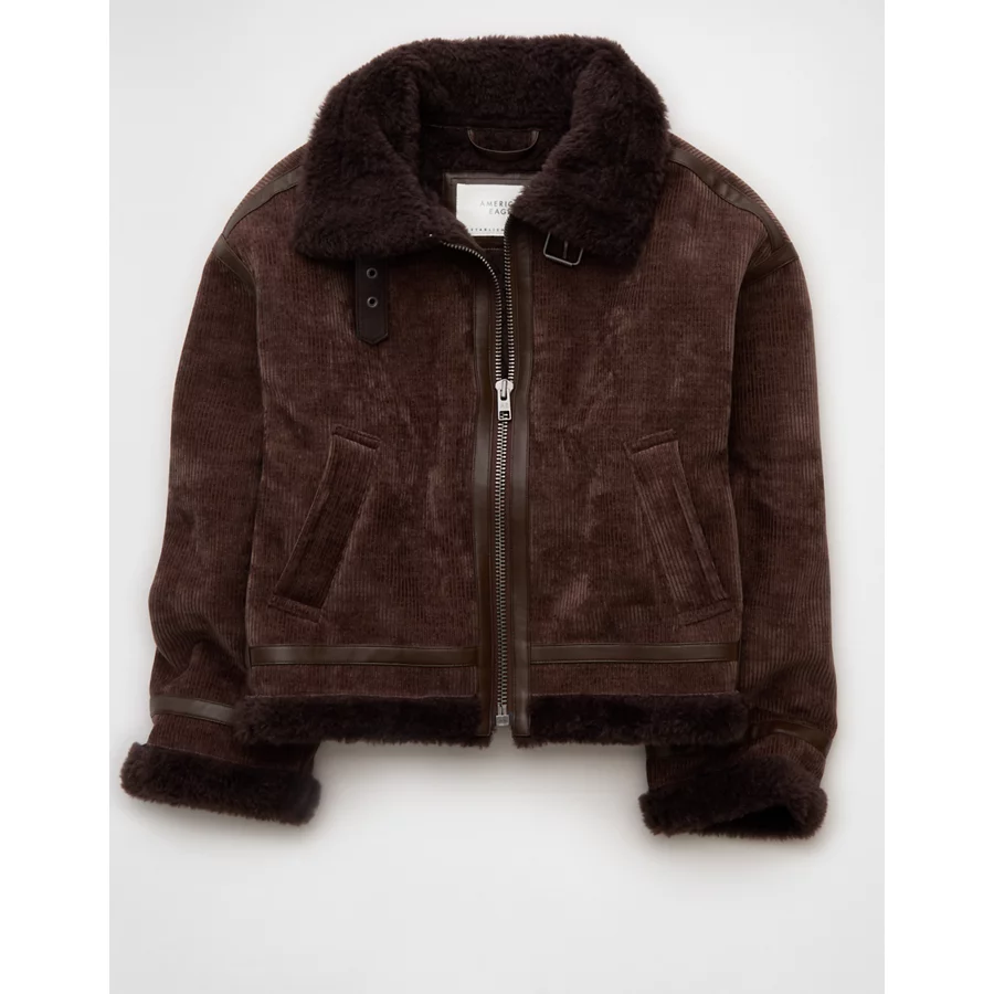 AE Cropped Corduroy Bomber Jacket – Brown