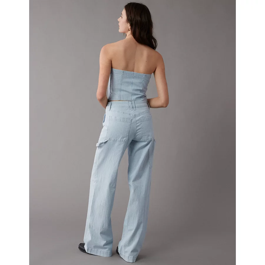 AE Cropped Railroad Denim Top – Light Blue