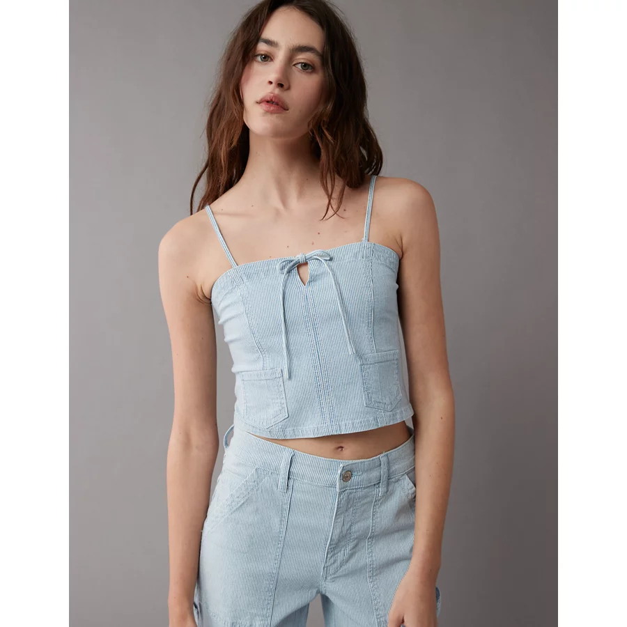 AE Cropped Denim Tank Top - Cream