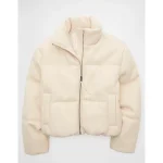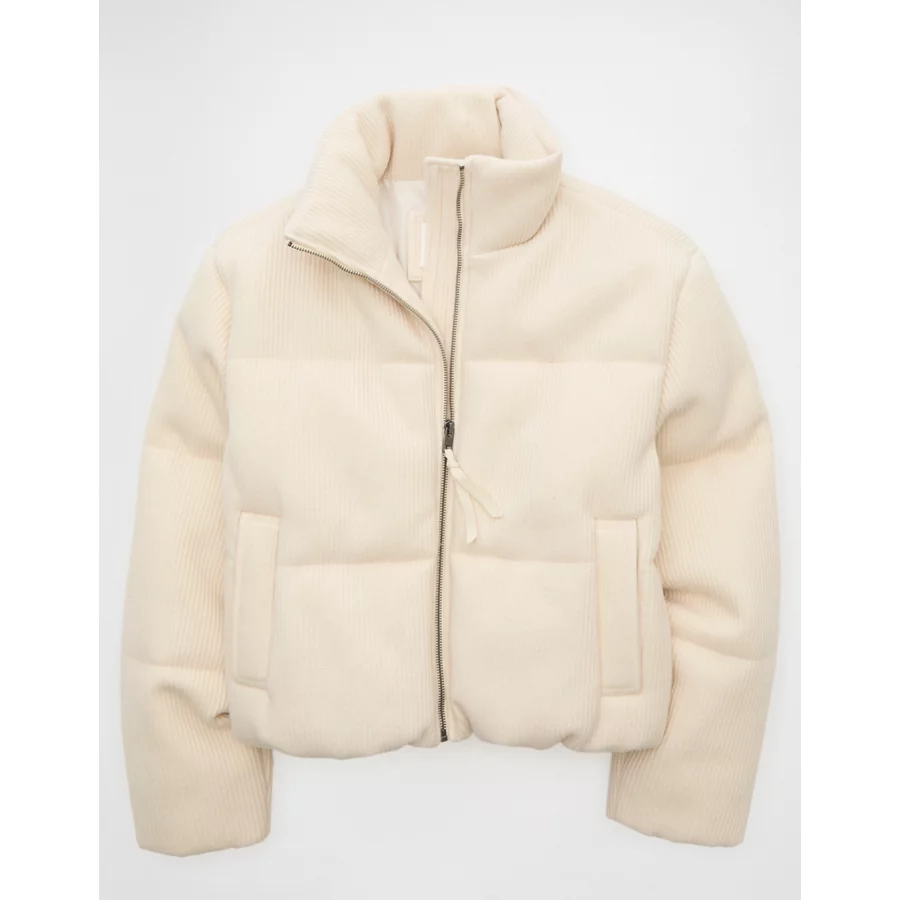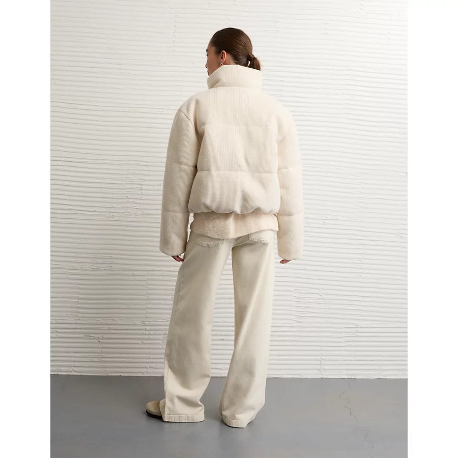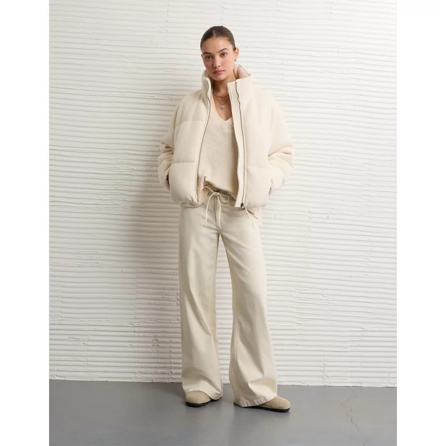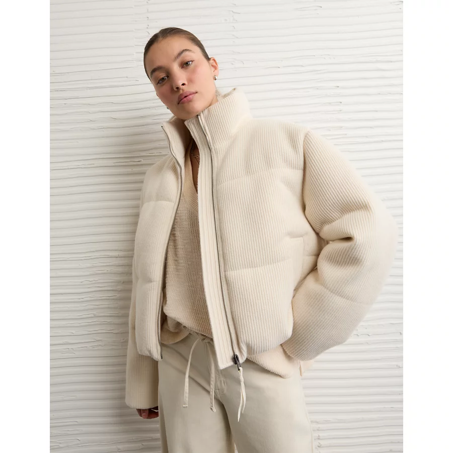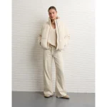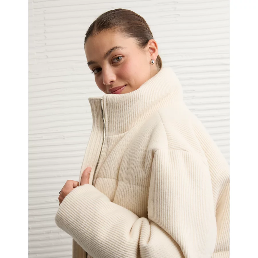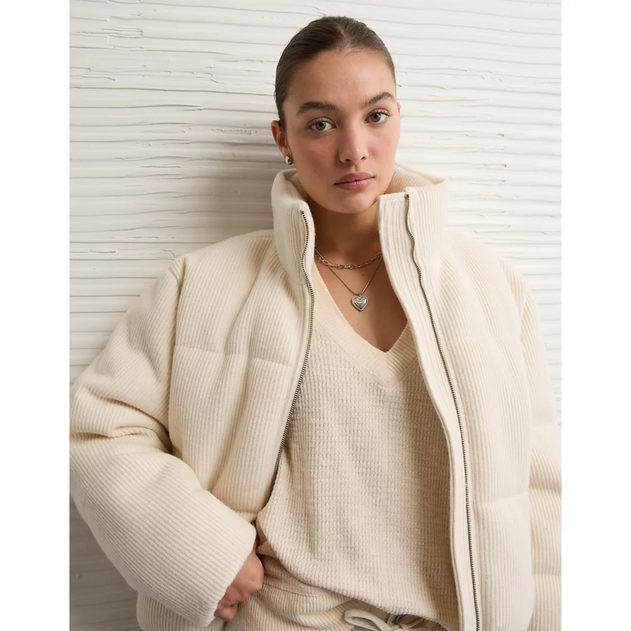 AE Cropped Waffle Zip-Up Hoodie - Medium Heather Gray