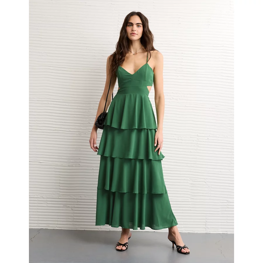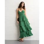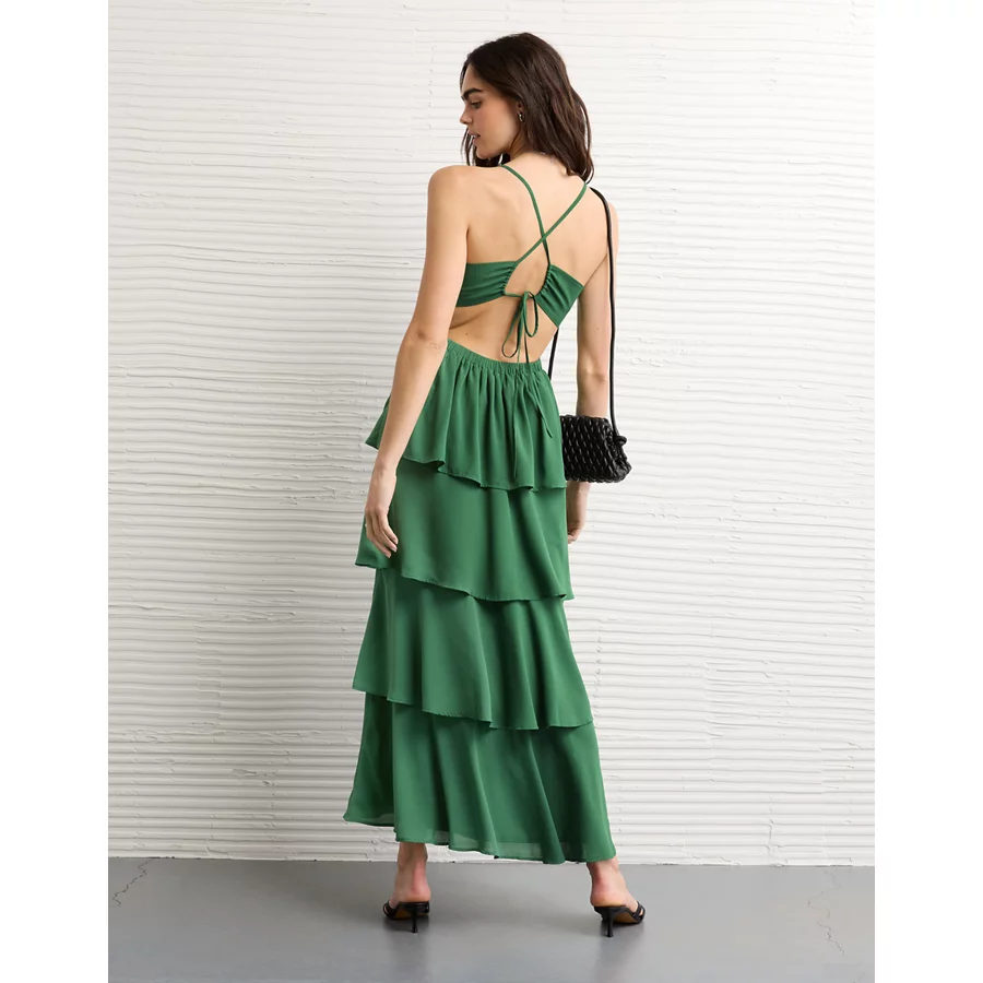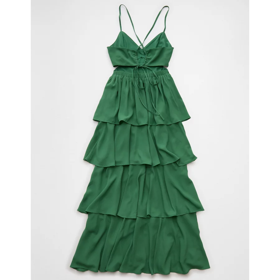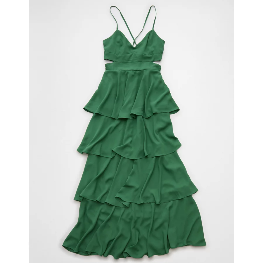 AE Asymmetrical Ruffle Maxi Slip Dress – Light Blue