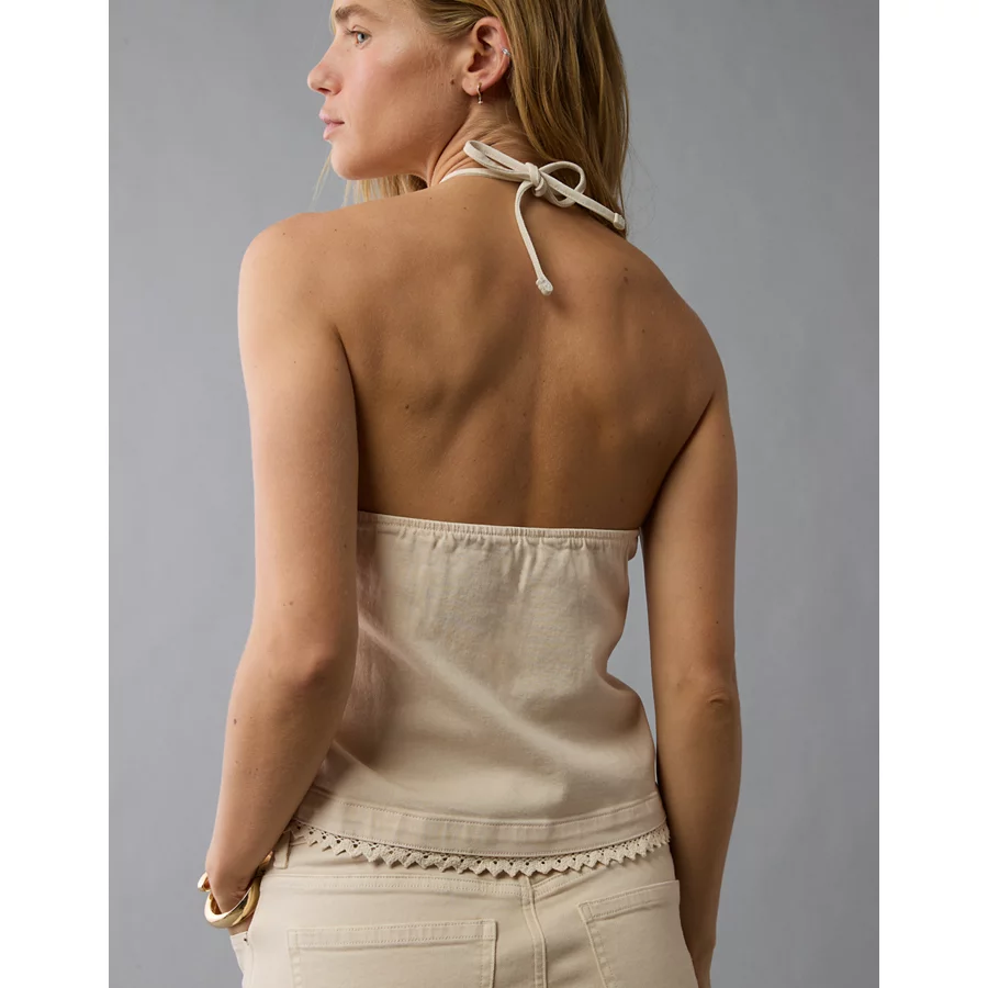 AE Denim Halter Shift Midi Dress - Dark Wash