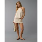 AE 11″ Dreamy Drape Stretch High-Waisted Jort – Light Tinted Wash