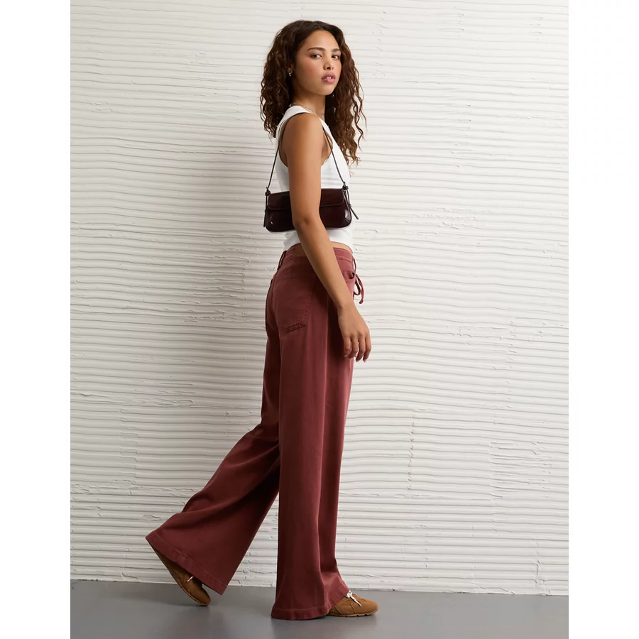 AE Dreamy Drape Stretch Low-Rise Ultra Wide-Leg Pant – Dark Rust