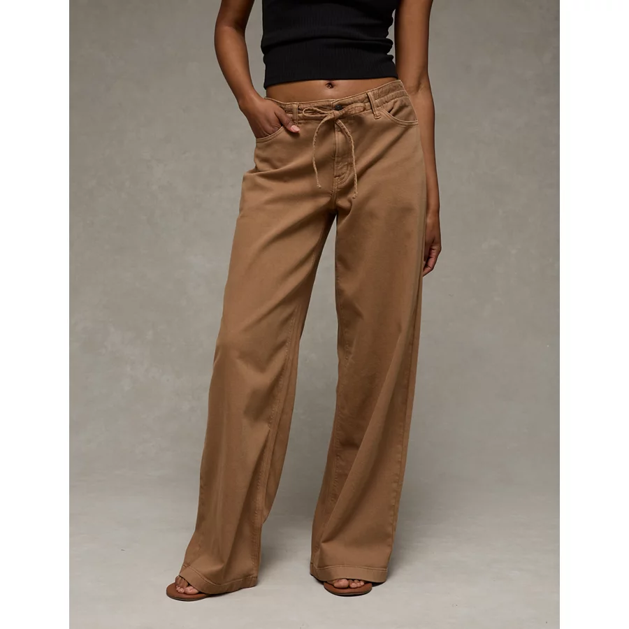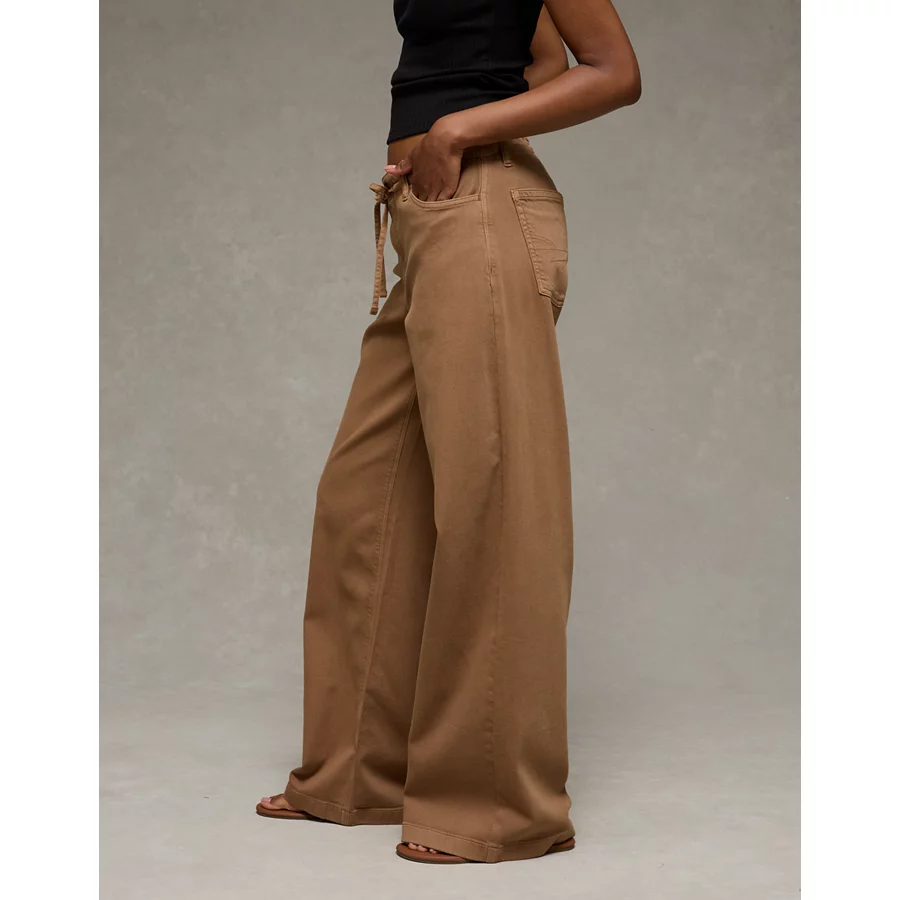 AE Dreamy Drape Stretch Low-Rise Ultra Wide-Leg Pant - Bone Khaki