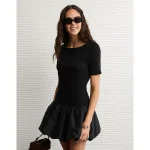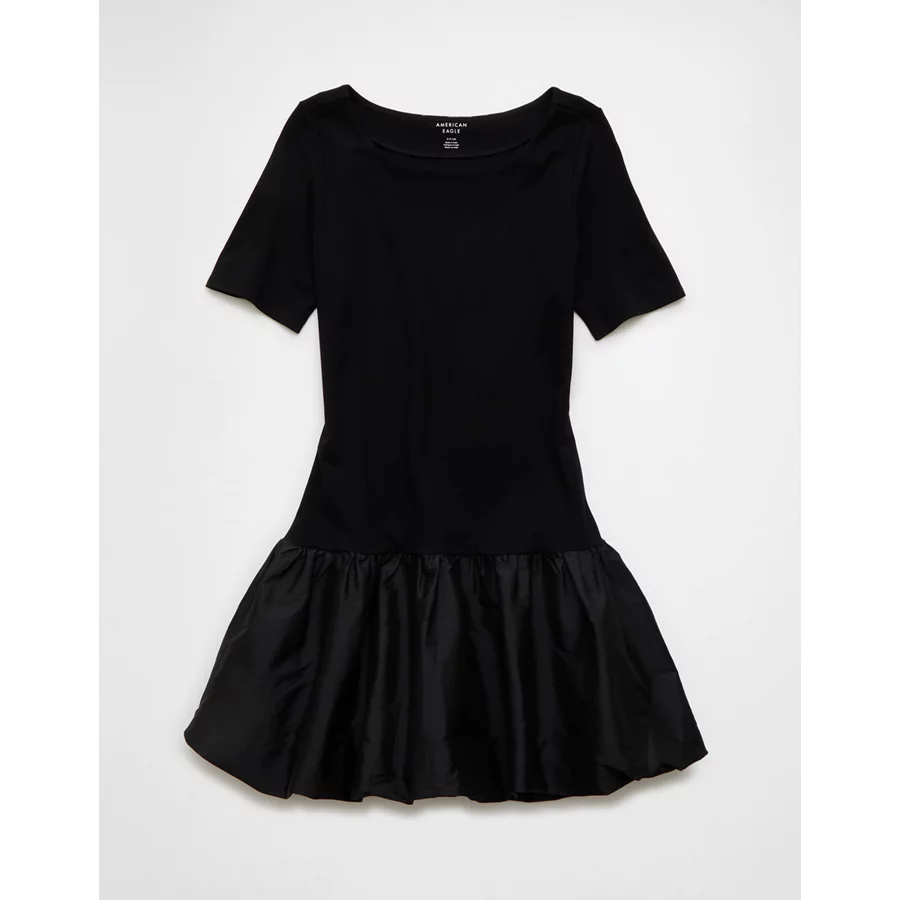 AE Drop Waist Bubble Mini Dress – Black