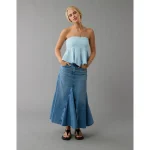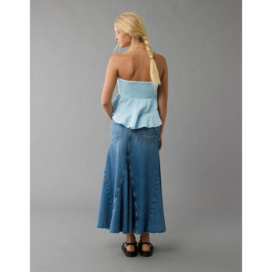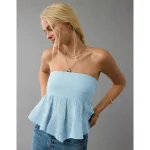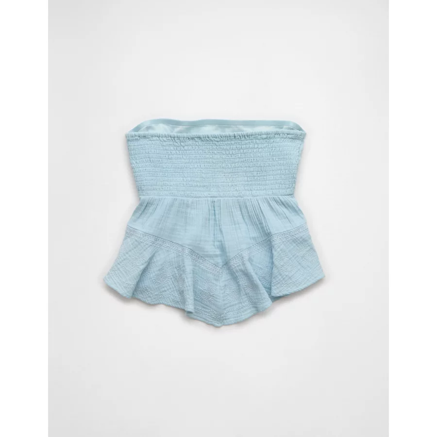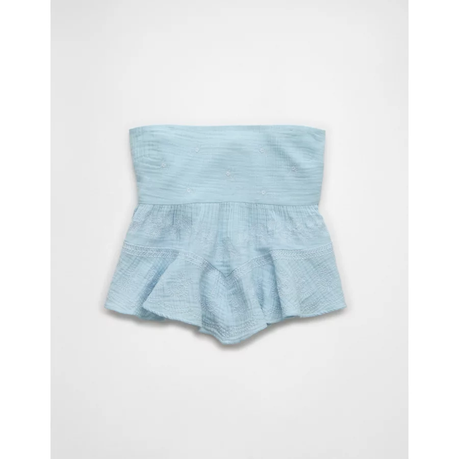 AE Embroidered Babydoll Tube Top – Light Blue