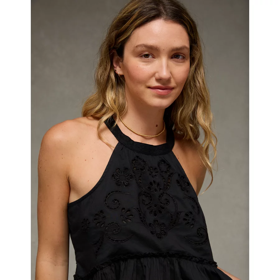 AE Asymmetrical Ruffle Maxi Slip Dress – Blue