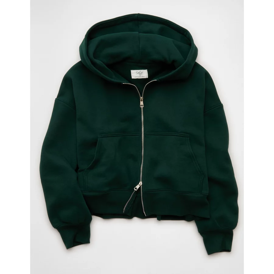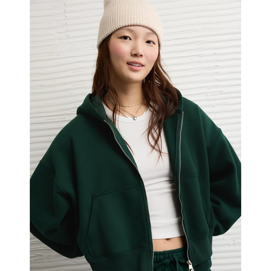 AE Everyday Luxe Barrel Sleeve Full Zip Hoodie – Deep Forest