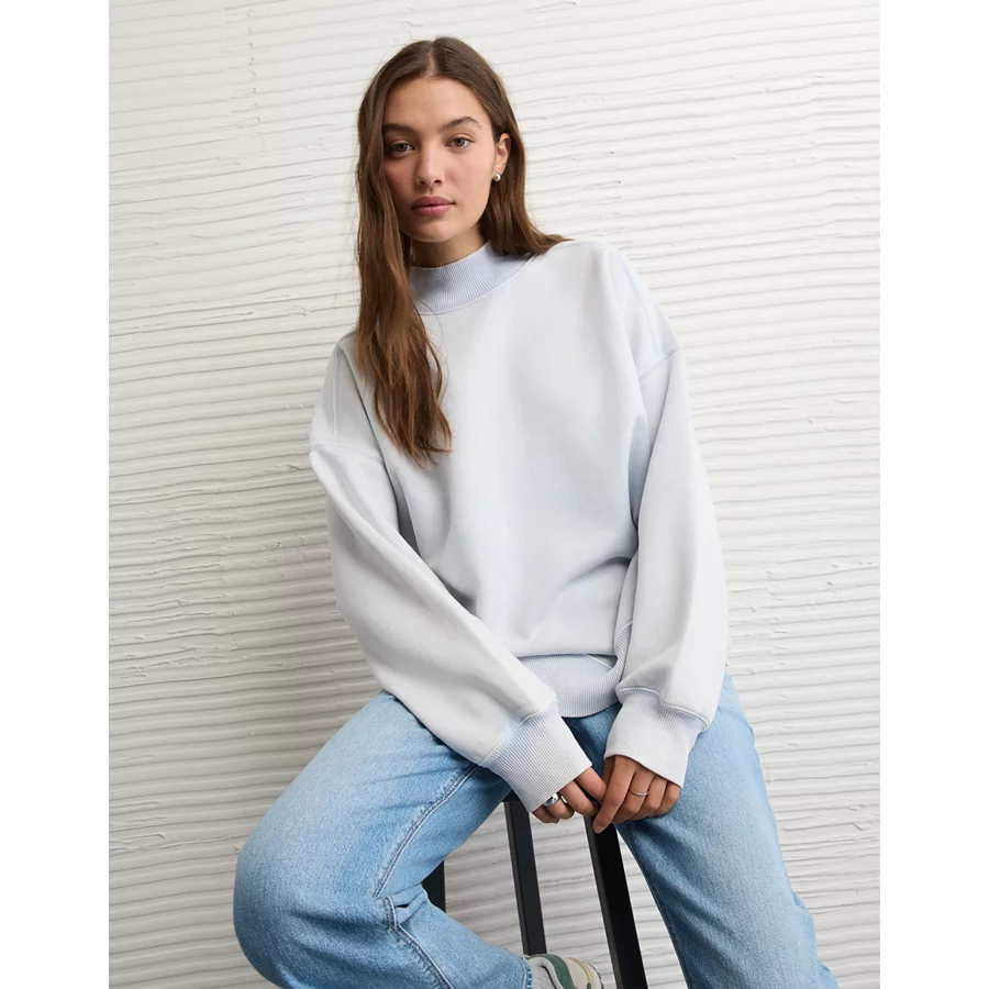 AE Everyday Luxe Mock Neck Sweatshirt – Light Blue